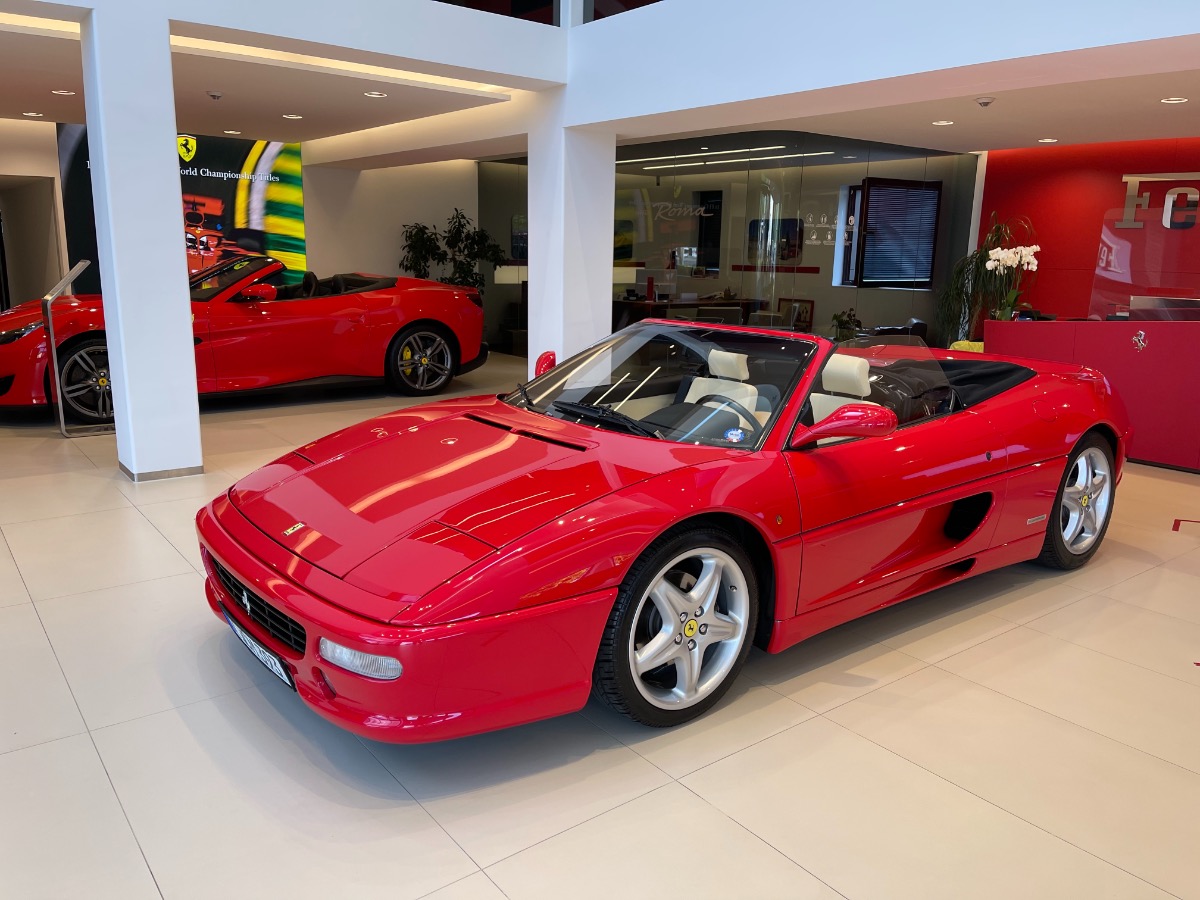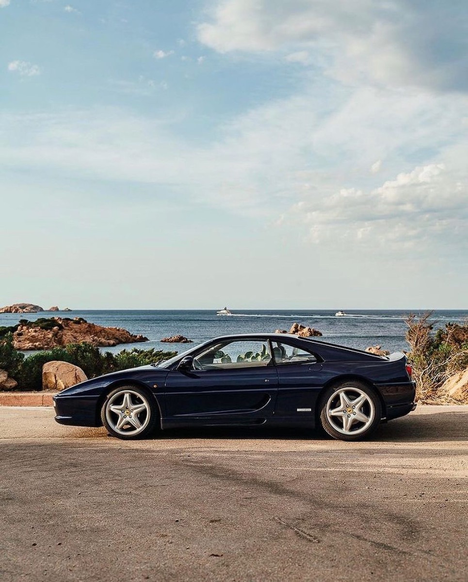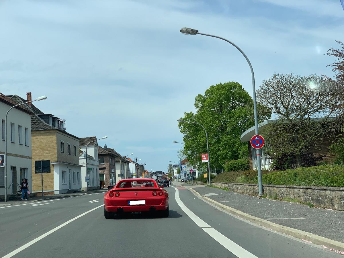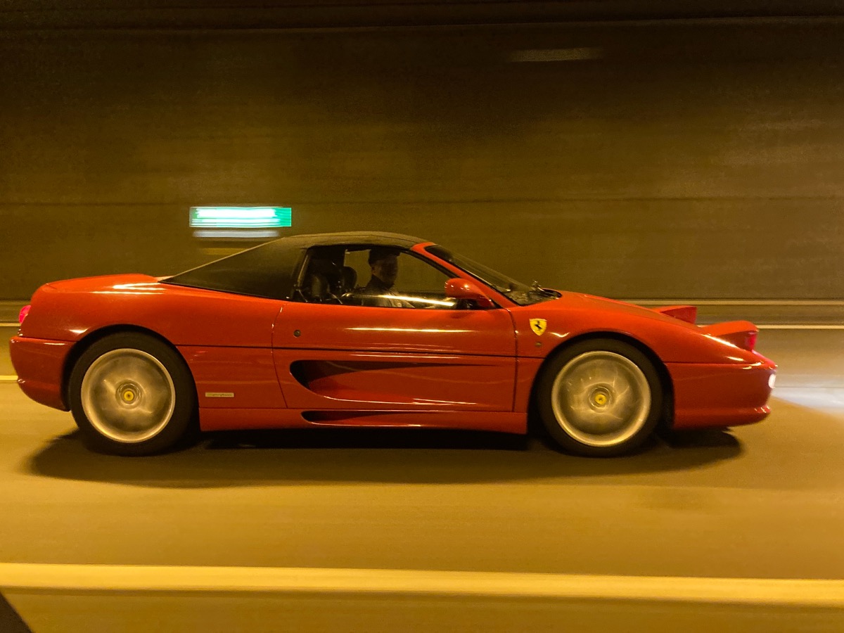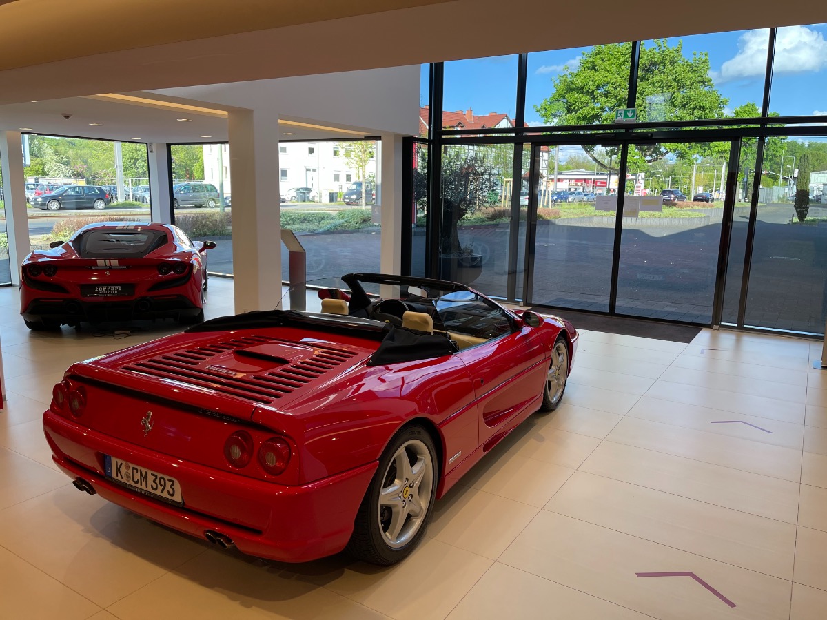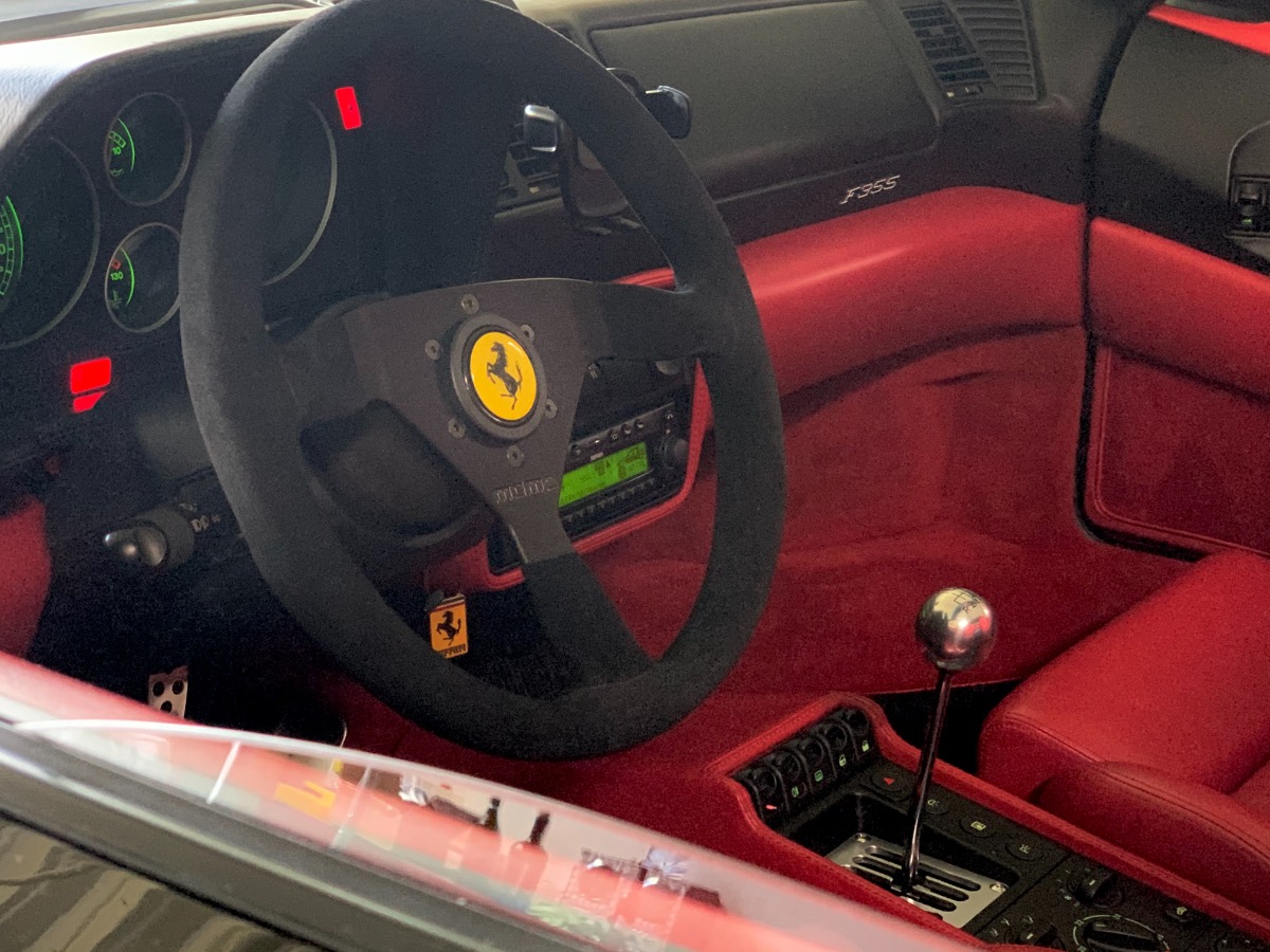 Heute "on the road": 355 GTS. Kein Schriftzug F 1, mithin offenbar "gated shifter", also handgeschaltet mit der schönen Schaltkulisse.