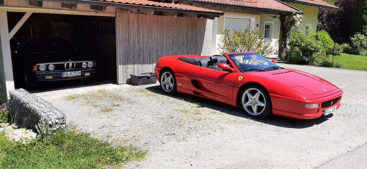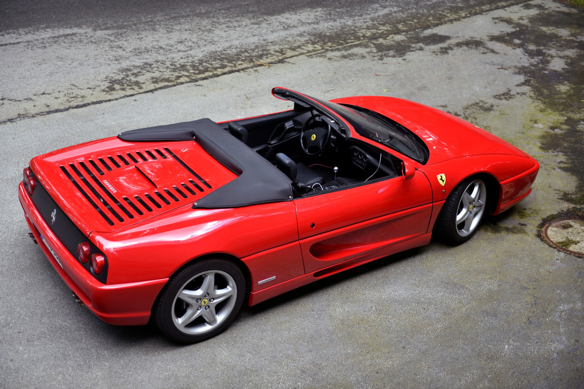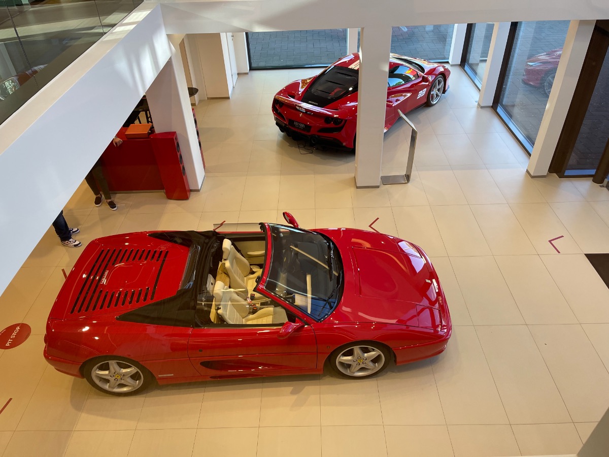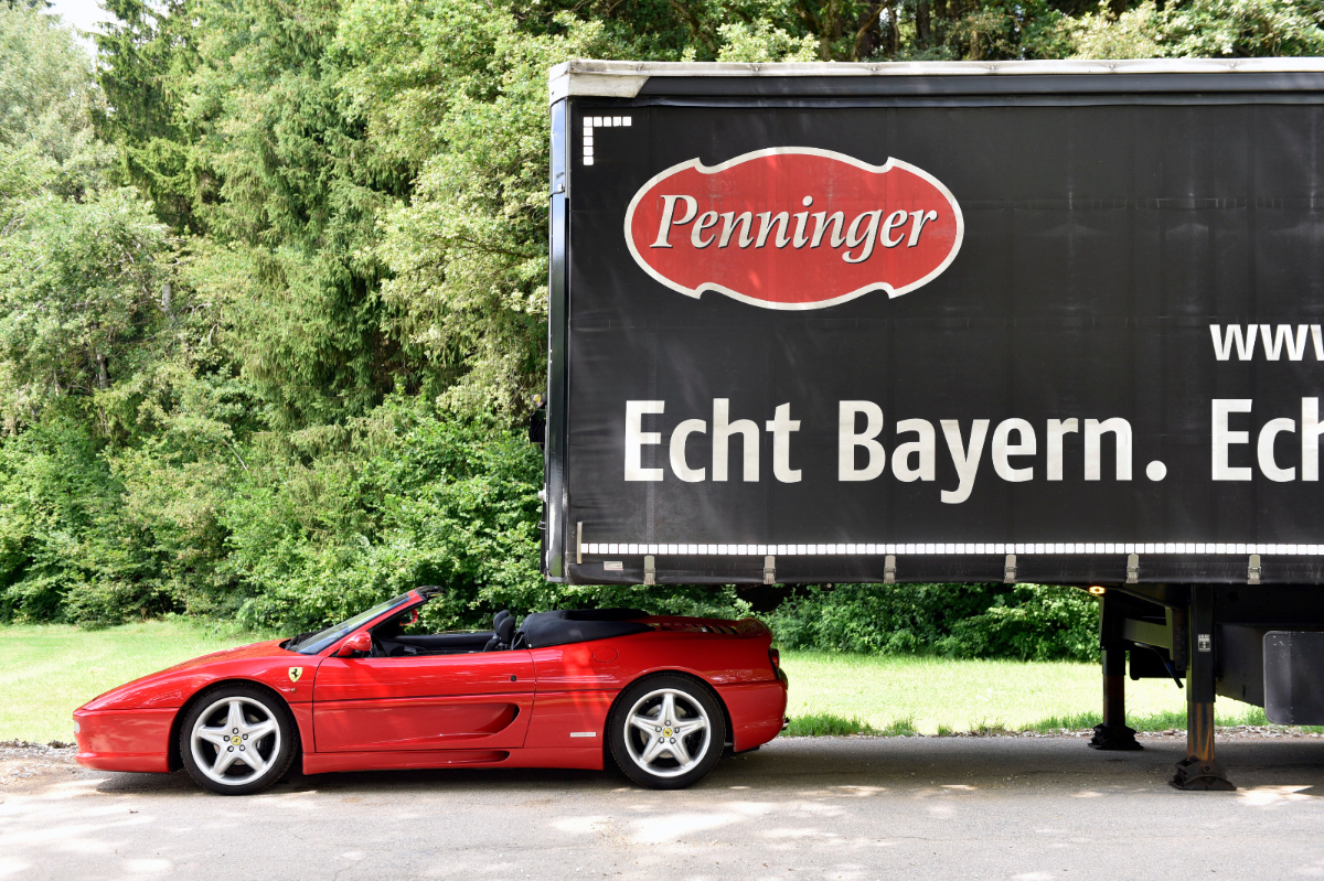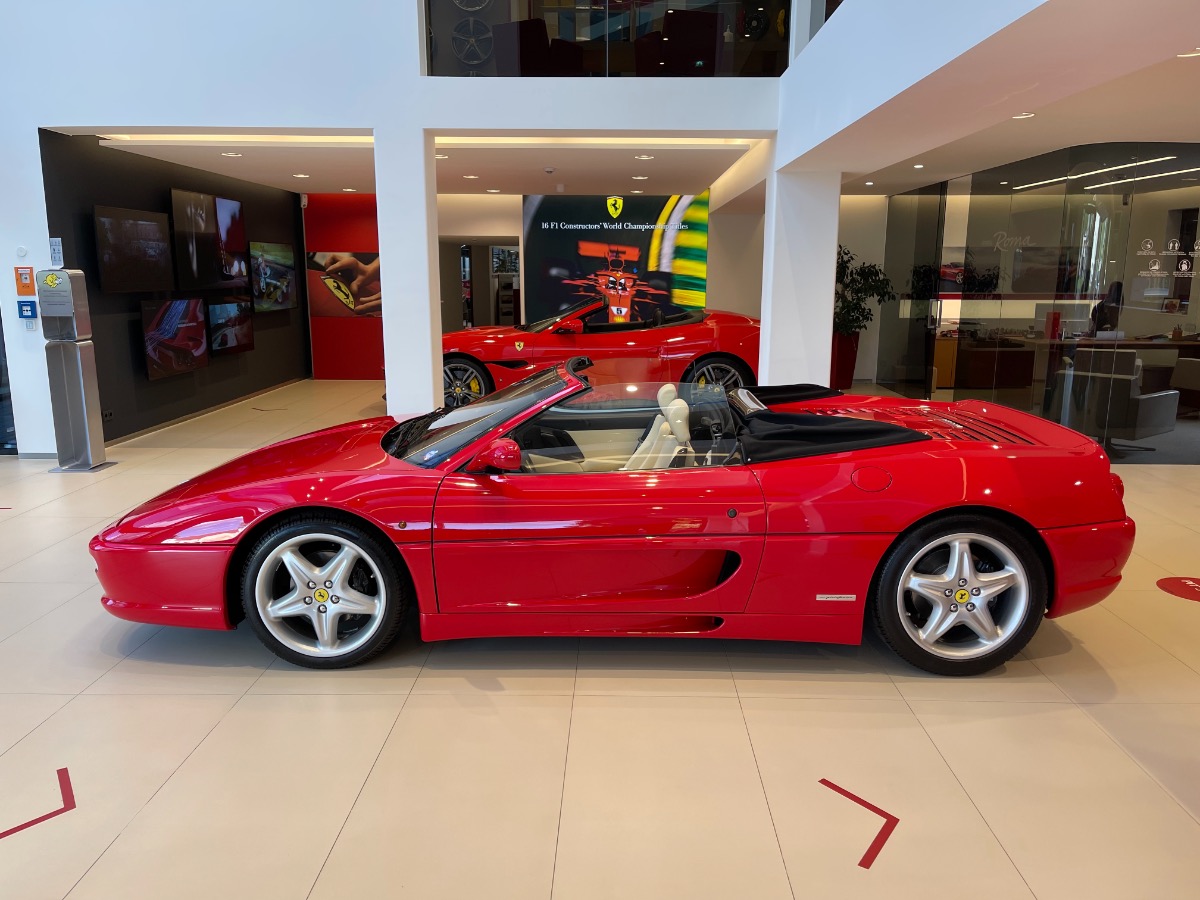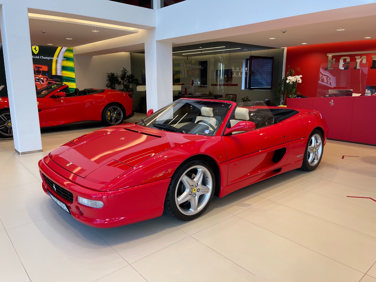 Heute "on the road": 355 GTS. Kein Schriftzug F 1, mithin offenbar "gated shifter", also handgeschaltet mit der schönen Schaltkulisse.