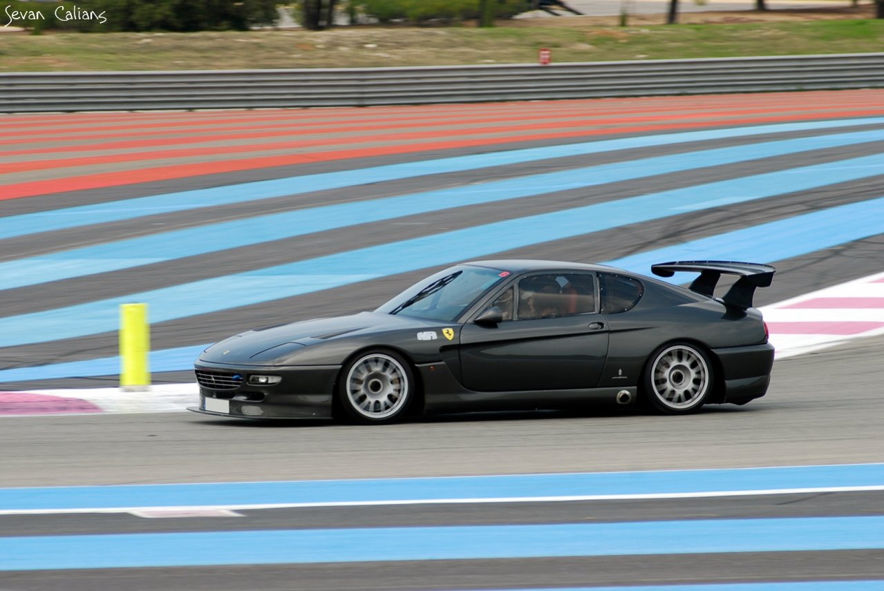 Ein progressiv gestalteter 456er dürfte kein Einzelfall sein. Dieser war beim Ferrari Track Day 2011 in Silverstone mit von der Partie.