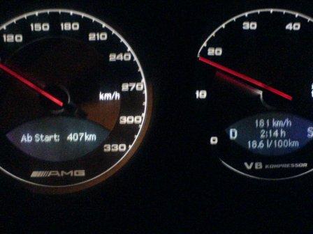 Oder Du hast tatsächlich bei 210km/h den Tempomaten rein gehauen und alle Tempolimits mißachtet, dann dürfte das beim SL55 einen durchschnittlichen Verbrauch von 15,5l/100km bedeuten...