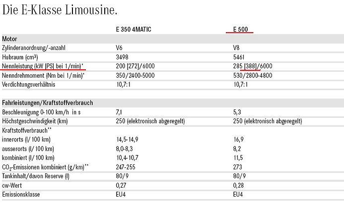 Mein Vater hat sich den E 500 bestellt und mit Allrad und Sportpacket.