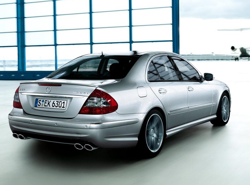 Es gibt ja 2 Sportpakete, das normale und das von AMG. Wenn er das AMG Sportpaket geordert hat, bekommt er ein Sportlenkrad, 18'' AMG Felgen, Alu Pedale, AMG Styling, aber nicht mit der E63 Schürze sondern der normalen AMG Schürze, Sportendschalldämpfer mit sportlicherem Sound und 2 AMG Endrohren, eines links eines rechts.