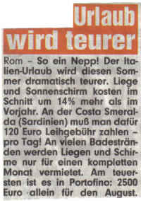 Kommt den Bild Zahlen zwar nicht ganz nahe, ist aber meiner Meinung nach trotzdem unverschämt. Ich habe generell Italien als sehr teures Urlaubsziel in Erinnerung. Zwei Wochen haben mich alles in einem weit mehr gekostet, als z.B. zwei Wochen auf St. Maarten inkl. Linienflug, Leihwagen, Unterkunft, Essen usw.