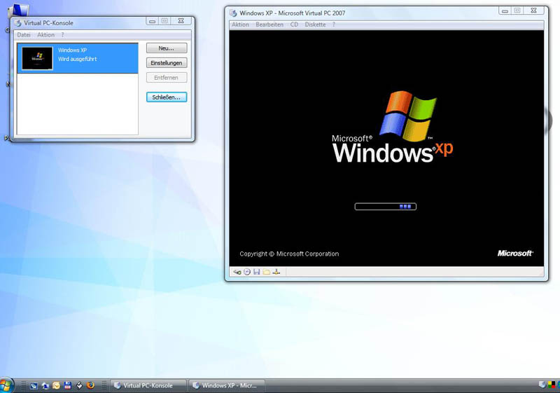 Und so schauts mit Virtual PC2007 ungefähr aus:
