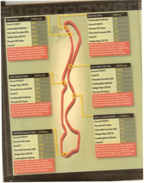 Es ist ein Test mit Z06, Porsche Turbo, Ford GT, F430, Gallardo, Viper SRT10.