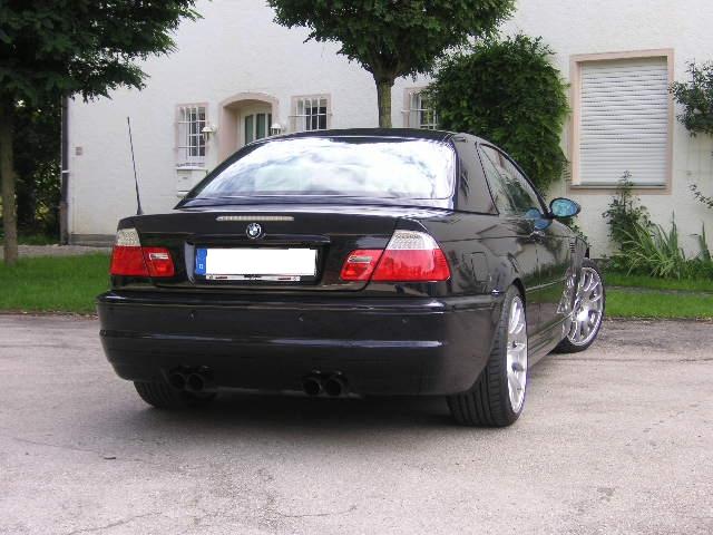 Endlich ist sie "gekommen", meine nun schon 2. E46 Emmy (1ste war silber) in Carbonschwarz (bei Auslieferung mit Hardtop), Volleder Platin inklusive Schalthebel und Interieurleisten in Leder Platin + mein Individual-Paket mit Bastuck-Endschalldämpfer, V-max-Aufhebung, 19" BBS Challange (275/30 hinten und 245/35 vorne).