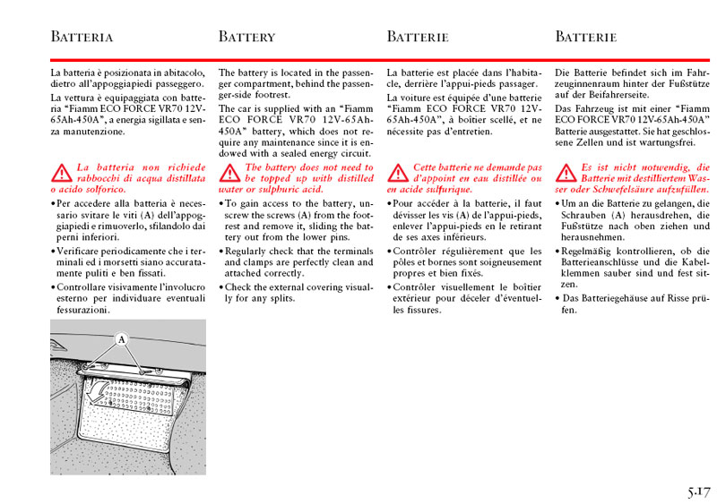 die Battarie sitzt beim 360 im Beifahrerfussraum unter dieser Aluriffel-Abdeckung. Wie man aus den Fotos von "Car Elite" ja erkennen kann.