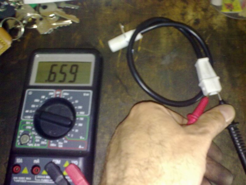 3. messe die Wechselspannung AC zwischen dem roten Kabel an Pin 3 eines jeden Digiplex ECUs und dem rot/schwarzen Kabel an Pin 2 des gleichen ECUs = sollte etwa 2V AC oder höher sein (dies prüft den output des Motordrehzahlsensors)