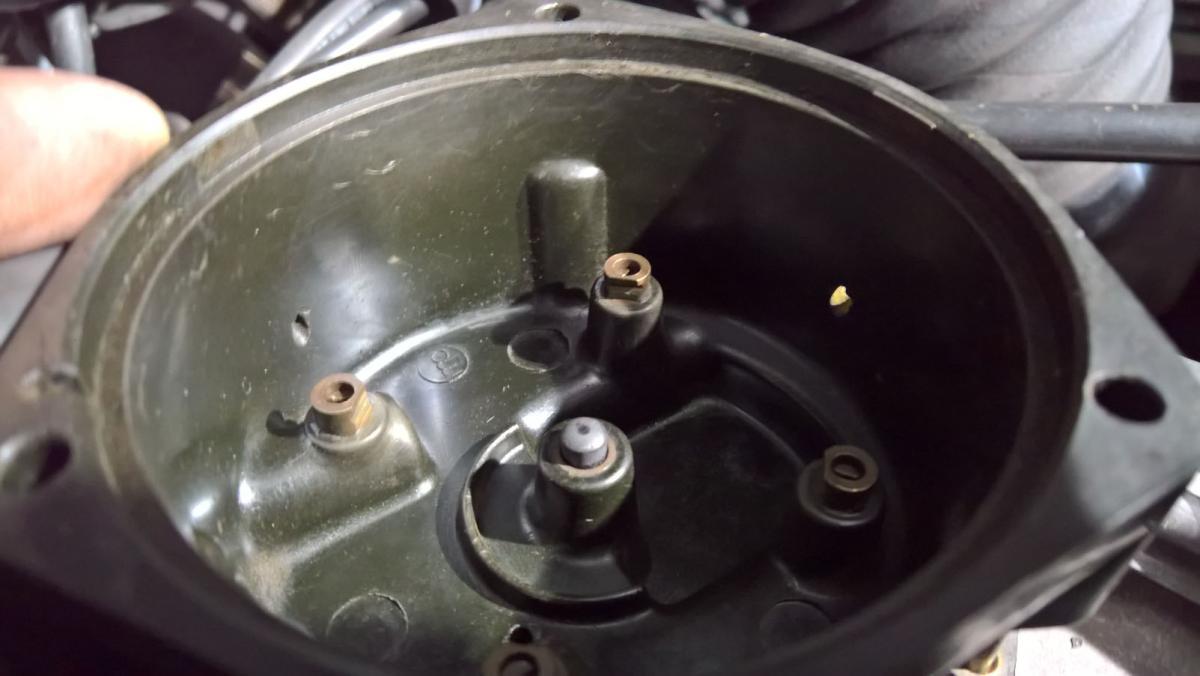 - vorderer Verteilerfinger hatte kalte Verbindung, d.h. bei Druck auf die Metallteile unterschiedliche Widerstandswerte, also defekt. In Ermangelung eines neuen (ist bestellt) Metall erhitzt, kalte Stelle hat sich wieder verbunden, konstant 0 Ohm auch nach Beanspruchung. Ich ersetze ihn aber trotzdem.