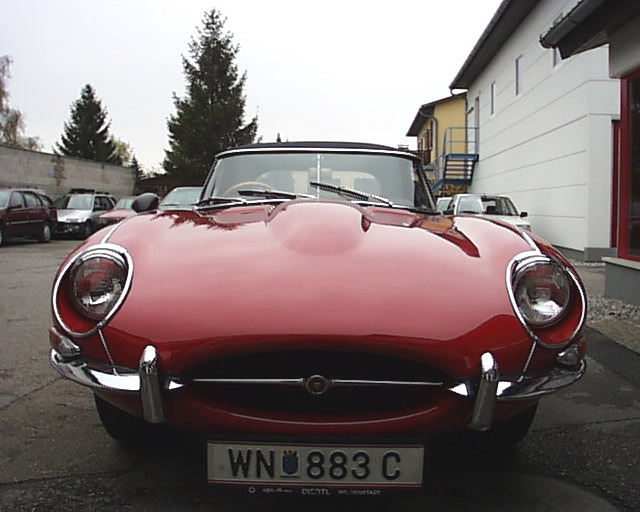 Wenn Du mal in der Hauptstadt bist, bei http://www.classicdepot.de/ kannst Du dort genau so ein 68er E-Tpye 4.2L Cabriolet in dem Rot mieten.