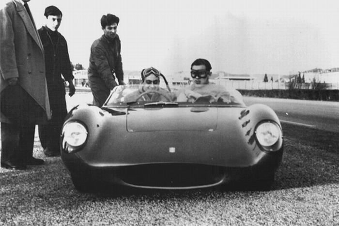 Hier der junge Alejandro De Tomaso mit Graf Volpi beim testen am Autodromo Modena 1961.