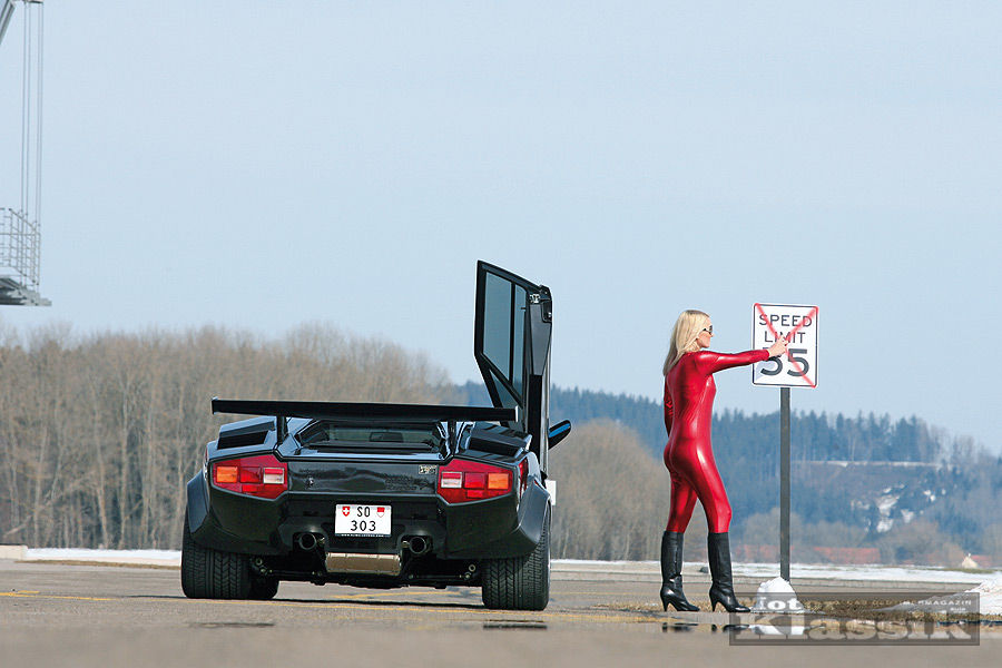 Ican remember very well: Back in 1975, in the age of 13, I saw this car alive for the first time in Munich which would have never let me go again. At that time you didn't say „cool“ but it certainly was: I will never forget how this sun-tanned playboy guy with the golden Rolex on his arm was parking his firered Lamborghini Countach backwards on Munich's famous boulevard, the Leopoldstrasse. Sitting on the side panel with the guillotine-style door open up. Then he got out of the just 107 centimeters high sportscar, went around the car, opened the passenger's door and helped a blonde with a Farrah Fawcett Majors style lion's mane out of the car. Puuh, a teenage boy will never forget that!
