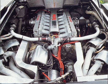 The narrow roads of the Wildschönau are as right for a Lamborghini as a flooded gravel pit for an airplane carrier. And the Austrian police - as is well know - doesn't want to tolerate the natural quick urge to be on the move of a 620 hp sportscar. Nevertheless the Albrex Countach Biturbo can quickly conquer the heart of its pilot. Due to the relatively small turbochargers power is available over the whole range of revs and allthough we couldn't prove it Gruber's driving performance data seem to be quite realistic: 4.0 seconds from 0-100 km/h are hard to beat even today. The top speed of about 300 km/h certainly isn't the engine's maximum. The gear-ratio doesn't allow a higher maximum speed...