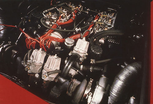 They finally agreed on an Albrex twinturbo engine based on the original 4754 cm_ twelve-cylinder-two-valve engine. During this conversion there was nearly no bolt untouched on the inner life of the motor and its periphery. A typical case for Gruber's well equipped workshop where he can mill or weld most of his special parts himself.