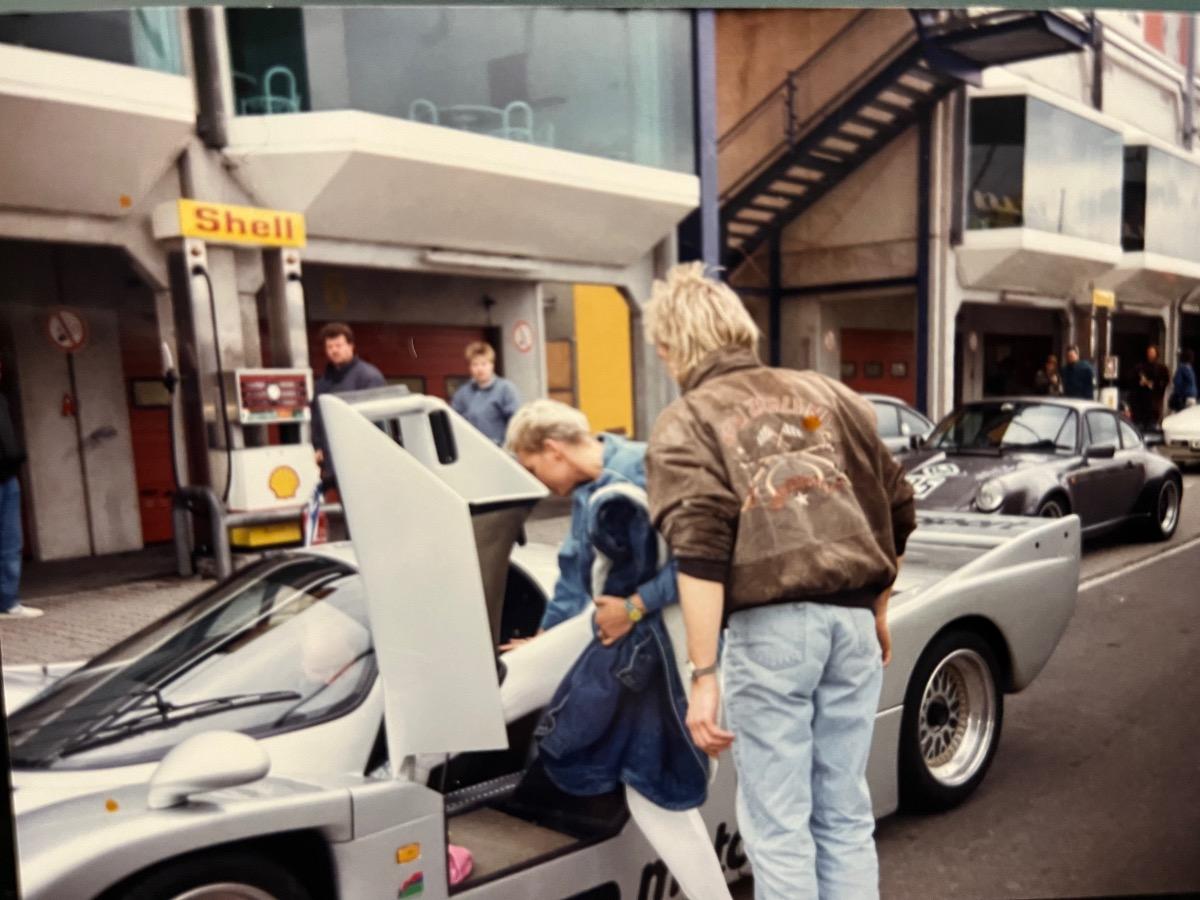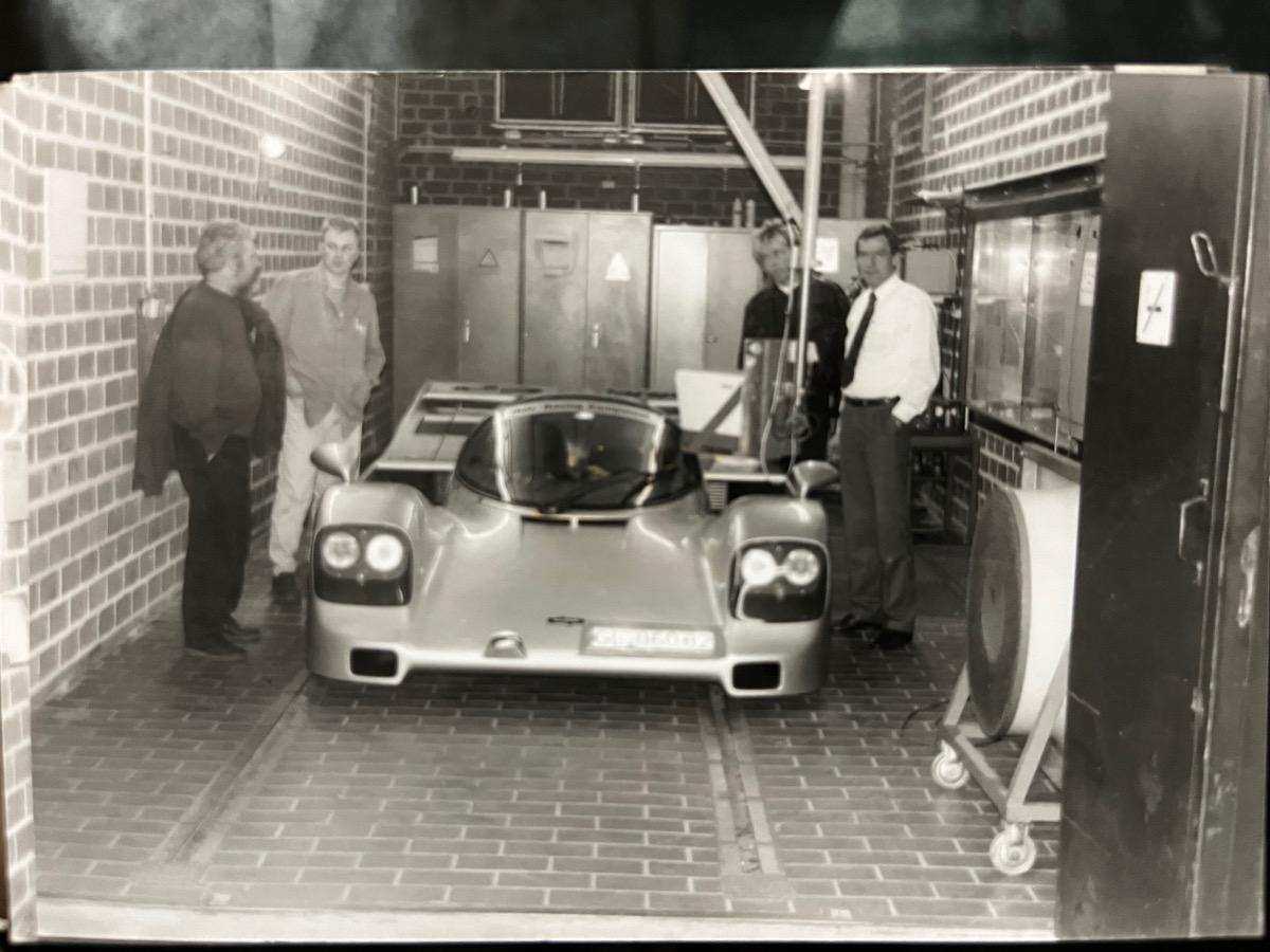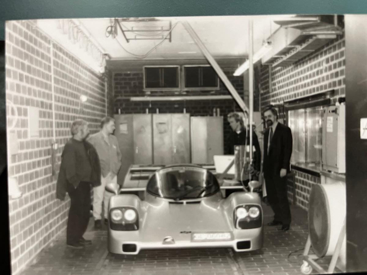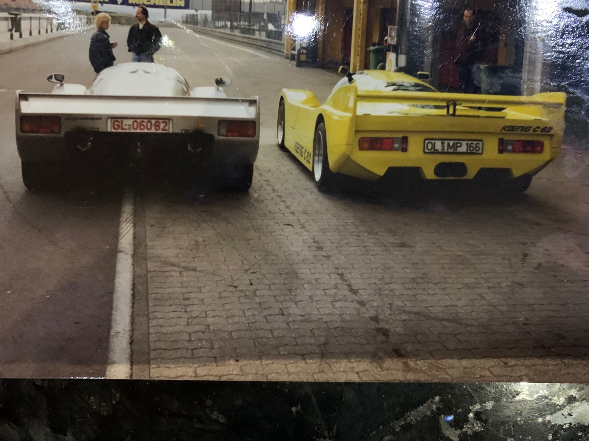 Das Auto war da im original Zustand mit Regenreifen und roter Nummer, war etwas abenteuerlich da wir auf der Autobahn in einen Stau gekommen sind und der 962 wie alle Rennfahrzeuge keine Kühlerlüfter hatte.