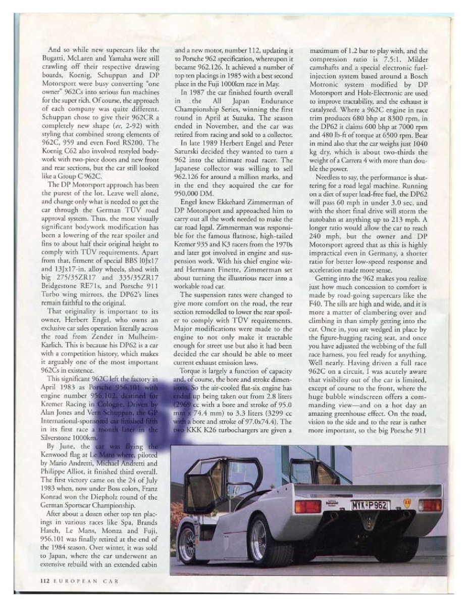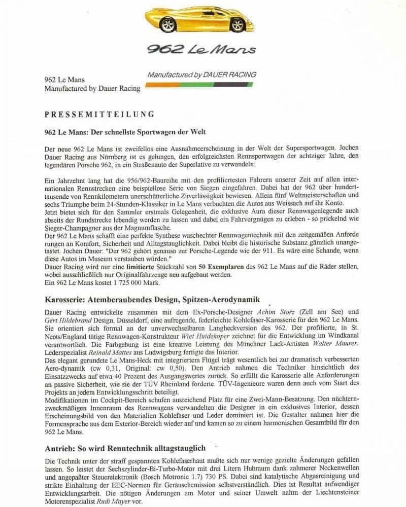 Interessantes Thema, den ersten Strassen 962 von DP Motorsport habe ich mit gebaut und bin damit über 3000 Testkilometer auf der Strasse gefahren. Auf Seite 3 bin ich namentlich erwähnt 😉