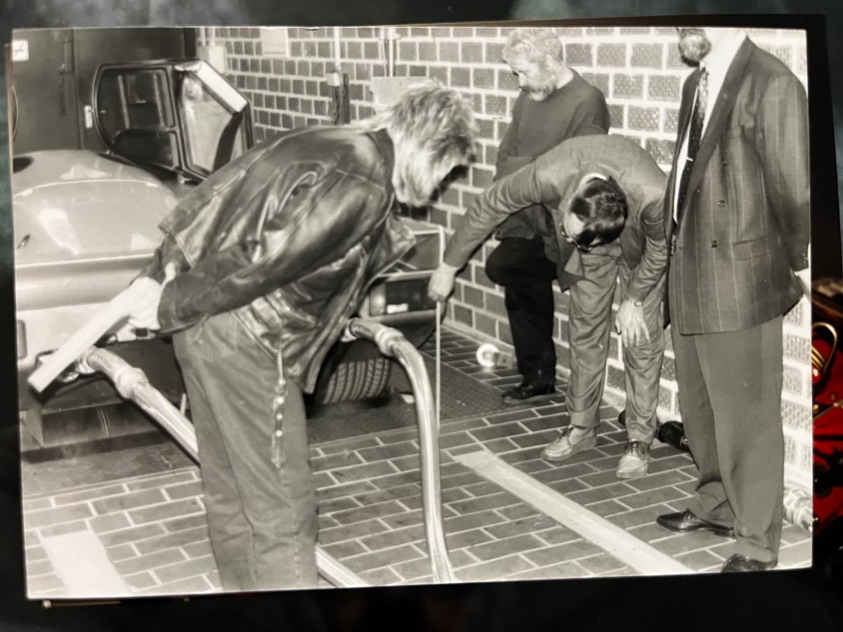 Ich habe noch ein paar alte Fotos ausgekramt, das ist beim TÜV Rheinland auf dem Fahrsimulator. Der links mit der Jacke über der Schulter ist Ekkehard Zimmermann, der blonde Jüngling mit den langen Haaren bin ich 😅und das andere sind TÜV Ingenieure