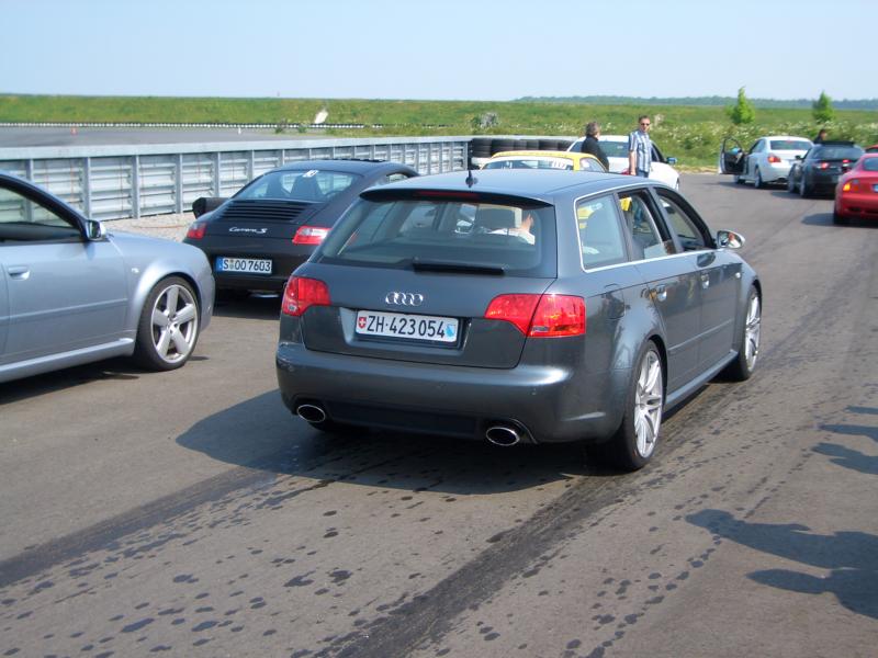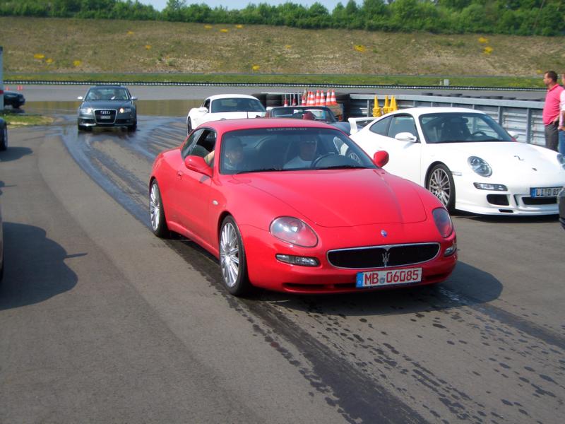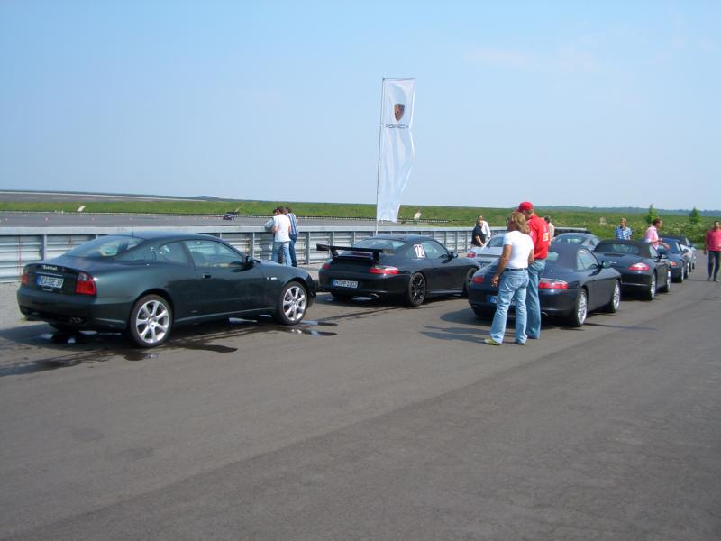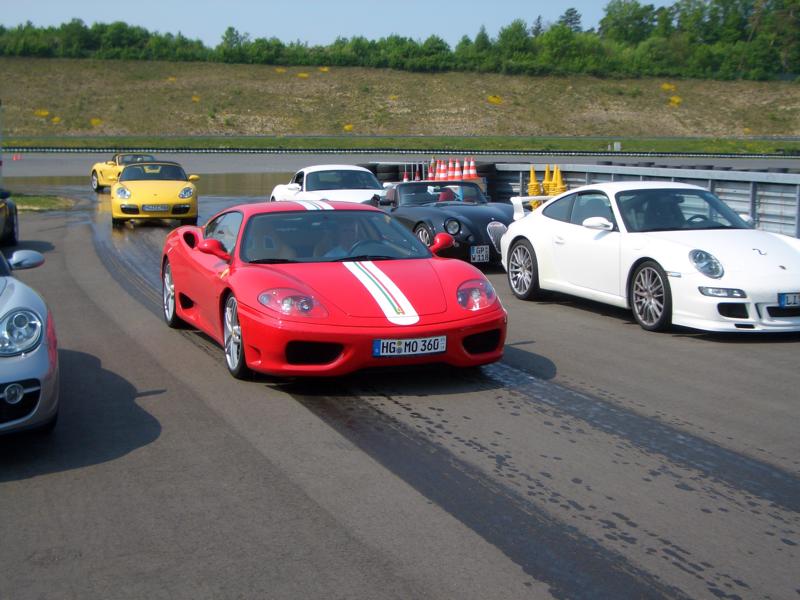 zurück aus der asphalt welt war der besuch im oval eine schöne aktion und ich freue mich alle user einmal live kennen gelernt zu haben. @ strip, sorry für deine verpassten kilometer, das nächste mal bist du am lenkrad und kannst fighten. ferrari und wasser. am anfang war ich etwas überrascht über das wasserscheue gesindel ; ) heute nach 5 stunden handwäsche der beiden roten weiß ich warum ; ) kompliment ins besondere an toni, da geht was, zumindestens wenn er mal beidhändig fährt. @ klaus, nett dass du meine trikolre nicht mehr völlig daneben findest und dir das weibliche serviceteam gefallen hat. wir handwerker haben eben einen geschmack. @ skr, so der boxster hat also damals im weg gestanden, aha ; ) sollte es mal wieder ein cp ler zusammentreffen in boxberg geben, gelobe ich besserung, denn dank euch und diesem forum habe ich den mut gefunden nicht nur auf stuttgarter produkte zu vetrauen. am ende der saison poste ich mal meine roten erfahrungen und rechnungen, herje.