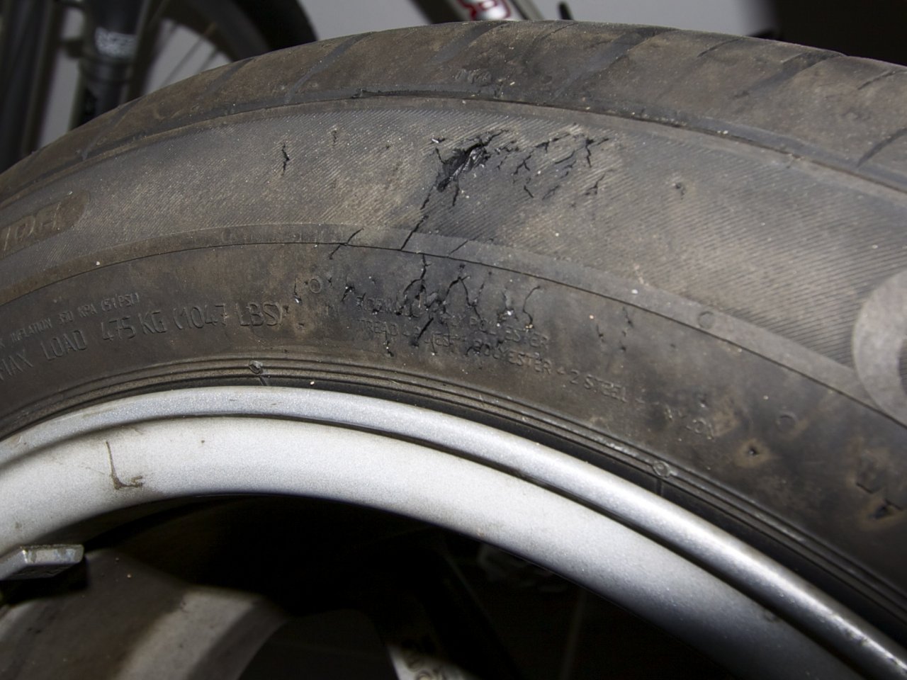 Da ich über keine starke Kante gefahren bin und das schon der zweite Reifen (Innenseite Vorne Links) innerhalb von drei Wochen ist. Zu dem war der Reifen neu.
