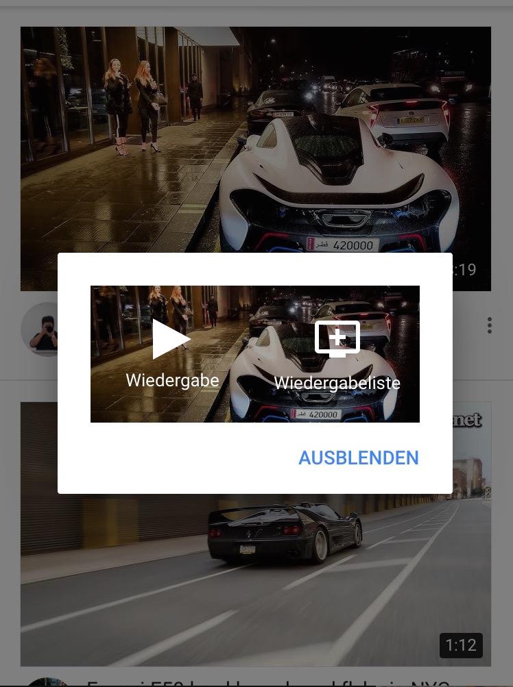 Hinzufügen zu Playlist (zB "Später Ansehen" oder eben eine neue erstellen)