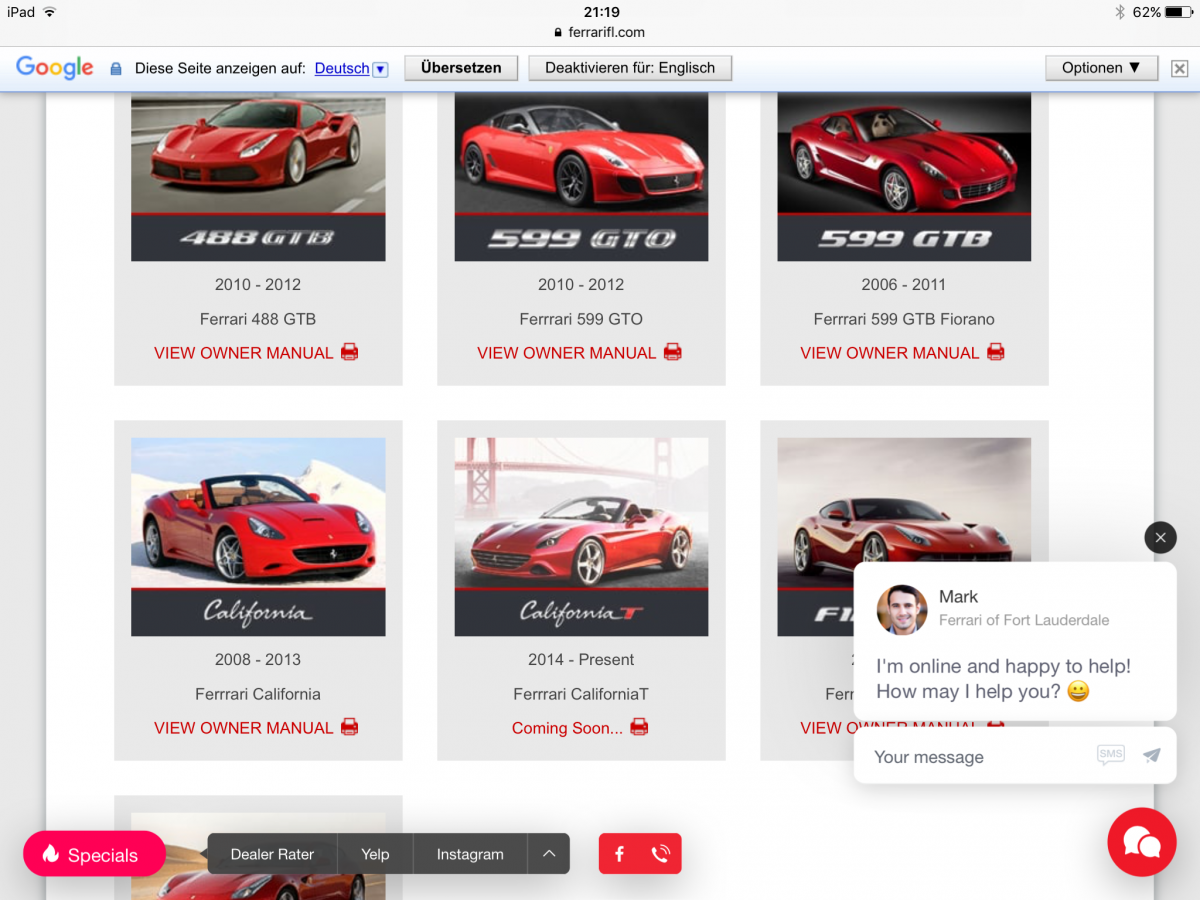 Über ferrari fort lauderdale bekommst du die englische Version ohne Anmeldung.