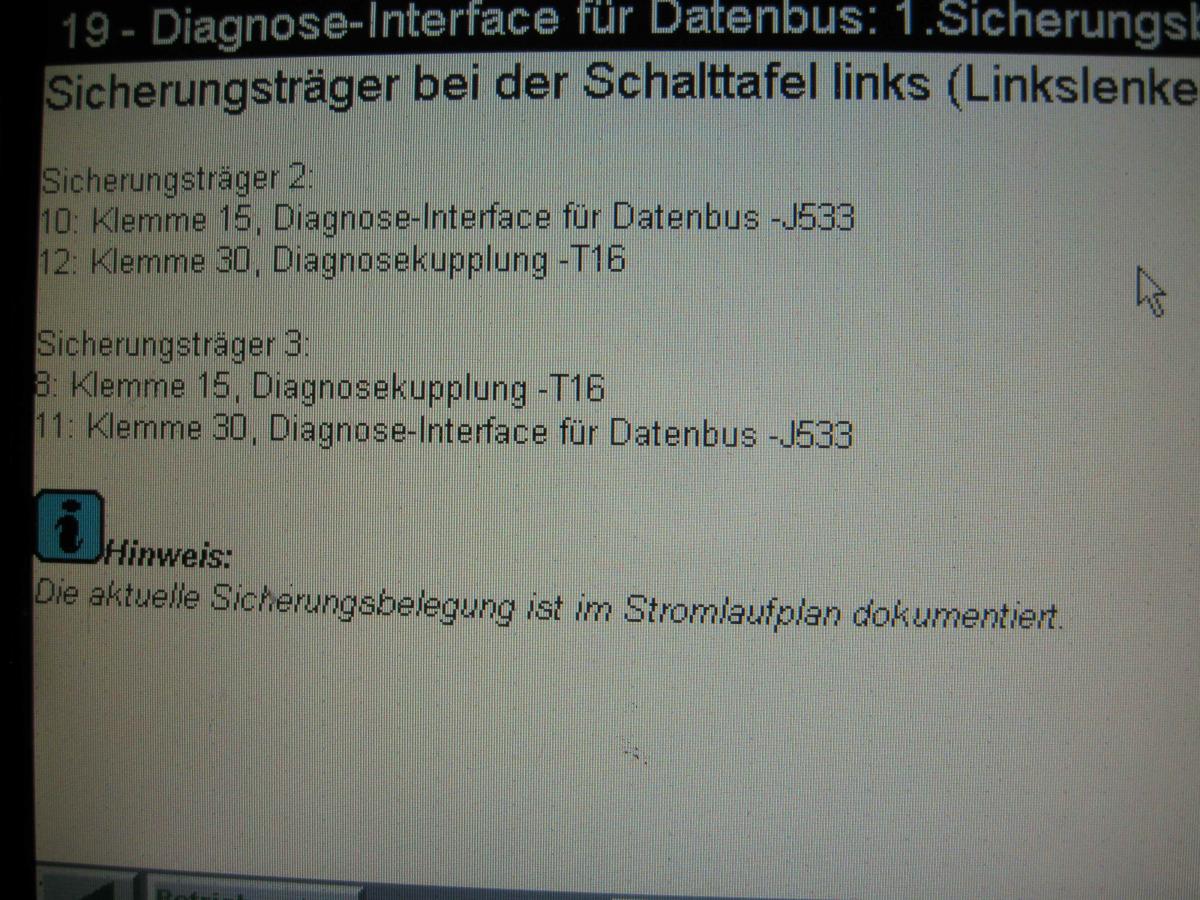 als nächstes kommt dann gleich der hinweis zu den entsprechenden sicherungen
