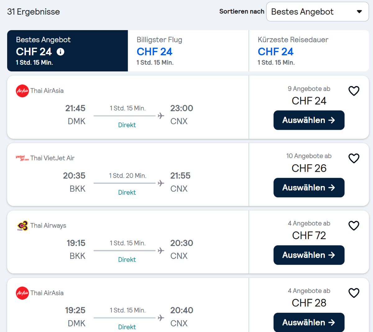 @Rechenknecht in Thailand sind jetzt am 17.04.2568 um ca. 15:40 Uhr noch ca. 70 Plätze online frei um heute nach Chang Mai zu fliegen. In den vielen Verkaufsstellen der Fluggesellschaften am Flughafen gibt es immer was. Fliegen ist da wie ein Bus-Ticket kaufen.