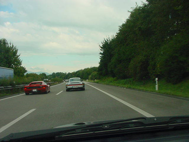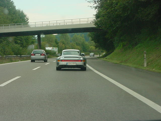 Diese Szenen fotografierte meine damalige Freundin aus dem EVO6. Wir waren auf dem Weg zu Dreharbeiten auf dem Gotthard als wir kurz nach Oftringen (Fahrtrichtung Luzern) auf einen kleinen Konvoi aus 911 und diesem 959 stiessen. Ich musste mir das Auto einfach näher ansehen und ich weiss nicht mehr, ob der Fahrer des Porsche mehr über den Testarossa staunte mit dem ich unterwegs war oder ich über den 959. Schien jedenfalls wie ich ein Fan von Sportwagen aus den 80ern zu sein.. :-))!