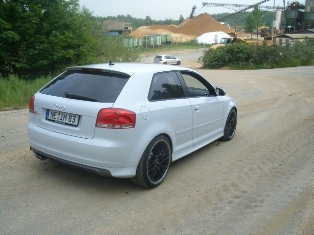 Ein wirklich schöner S3. Auf den kleinen Bildern sah er zu tief aus, doch auf den größeren wirkt er doch noch ganz okay. Also kompliment, die schwarzen Fälgen passen sehr gut zu der Farbe (obwohl sie echt sehr weiss rüber kommt) :-))!