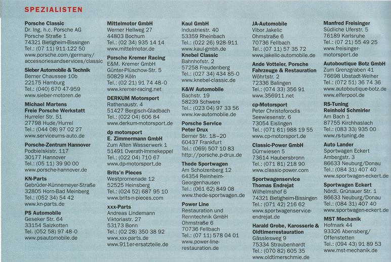 Dort findest du ein Auflistung von Spezialisten & Clubs, inkl eines 8 Doppelseitigen Berichts "Geburt einer Legende", wenn dich der Bericht nicht interessiert, die Spezialisten Auflistung hab ich dir mal gescannt.