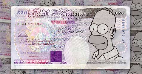 Der englische Geldverkehr steht vor einer ernsten Bedrohung: Simpson-Banknoten sind in Umlauf! Die Behörden warnen vor falschen 20-Pfund-Geldscheinen, die statt dem würdigen Antlitz der britischen Königin Homer Simpson zeigen.