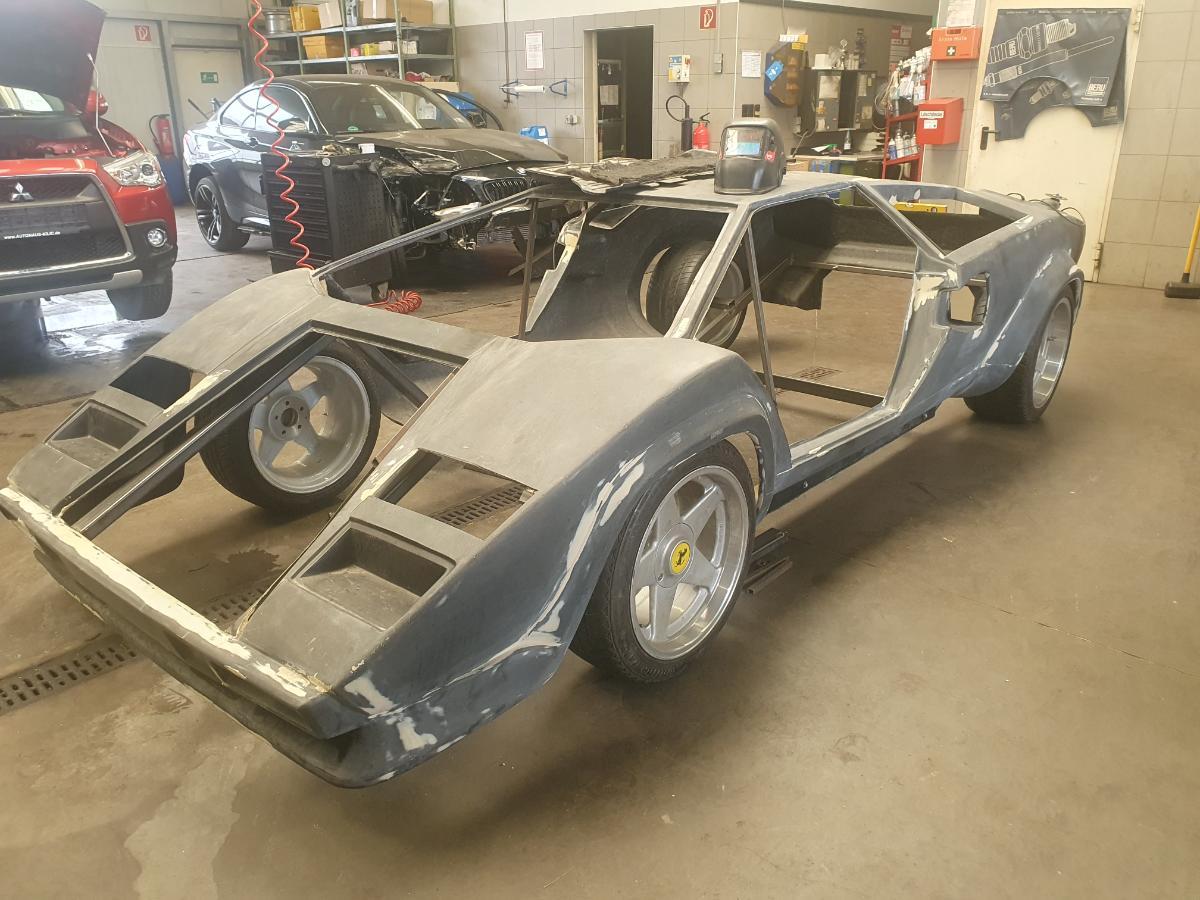 Karosserie aus Glasfaser. Die Werkstatt will den, wenn er fertig ist, an dir Wand hängen. Coole Idee, wie ich finde!