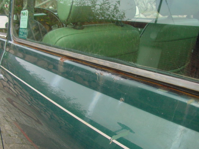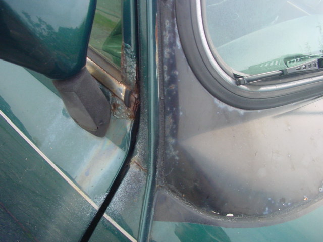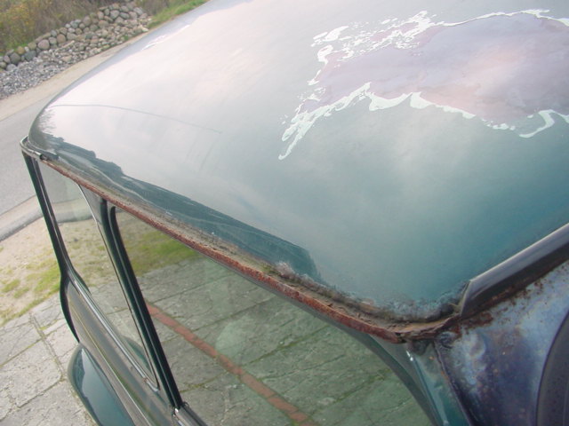 Die Wasserrinne am Dach ist wirklich teilweise weg, die Kotflügel am Übergang zu den Schwellern sind 2-3cm nach außen gewachsen, die Maske um die Scheinwerfer, der Rahmen der Windschutzscheibe sieht aus, wie ein Ameisenhaufen. Also ich wüßte jetzt nicht mal, ob es sich da überhaupt noch lohnt zu schweißen, besser wäre eine komplette Rohkarosse. :???: