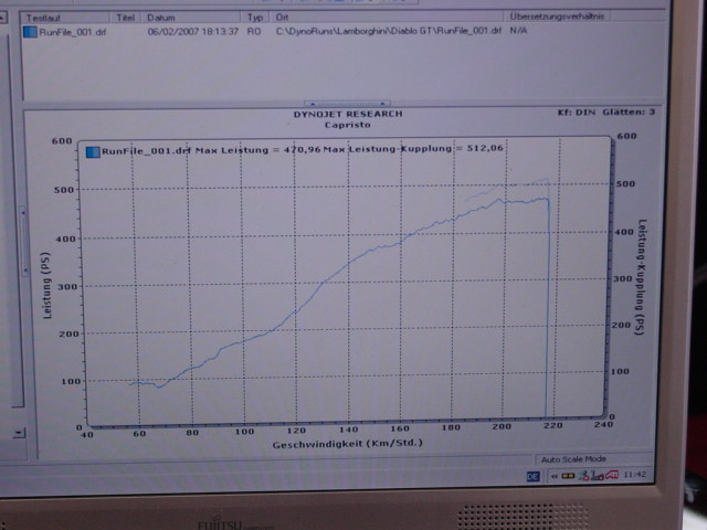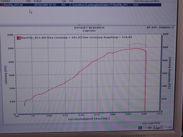 Hier möchte ich deine neugier befriedigen,einmal ein diagramm von deinen mit 528PS und einmal von einen Diablo GT mit 512 PS, und da waren keine Kat´s drin und eine Anlage, wo nur Rohre nach draussen zu den Endrohren gingen, also absolut kein Staudruck.
