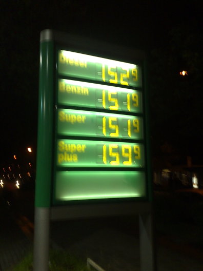 Gestern in Luxemburg hat der Liter Super Plus sage und schreibe nur 1,294 gekostet. Diesel lag bei 1,200 pro Liter.