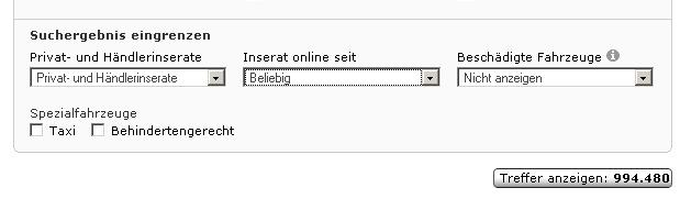 ich bin heute Abend mal wieder auf mobile.de gegangen, um ein bißchen zu stöbern. Dabei ist mir sofort die neue Optik aufgefallen. Und man bekommt wesentlich mehr Informationen, manchmal mehr als einem lieb sind. Ob das alles so sinnvoll ist steht auf einem anderen Blatt.