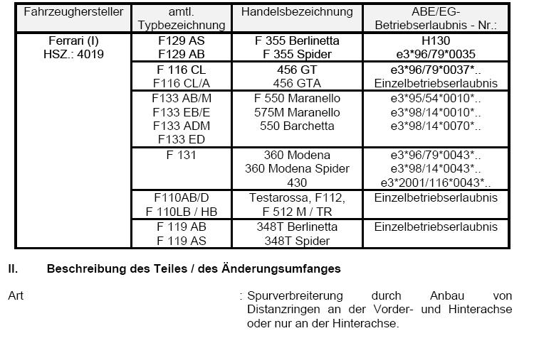 Ich wollte nochmal als Nachtrag einen Ausschnitt aus der H&R ABE für die entsprechenden Spurverbreiterungen für den 360er posten!