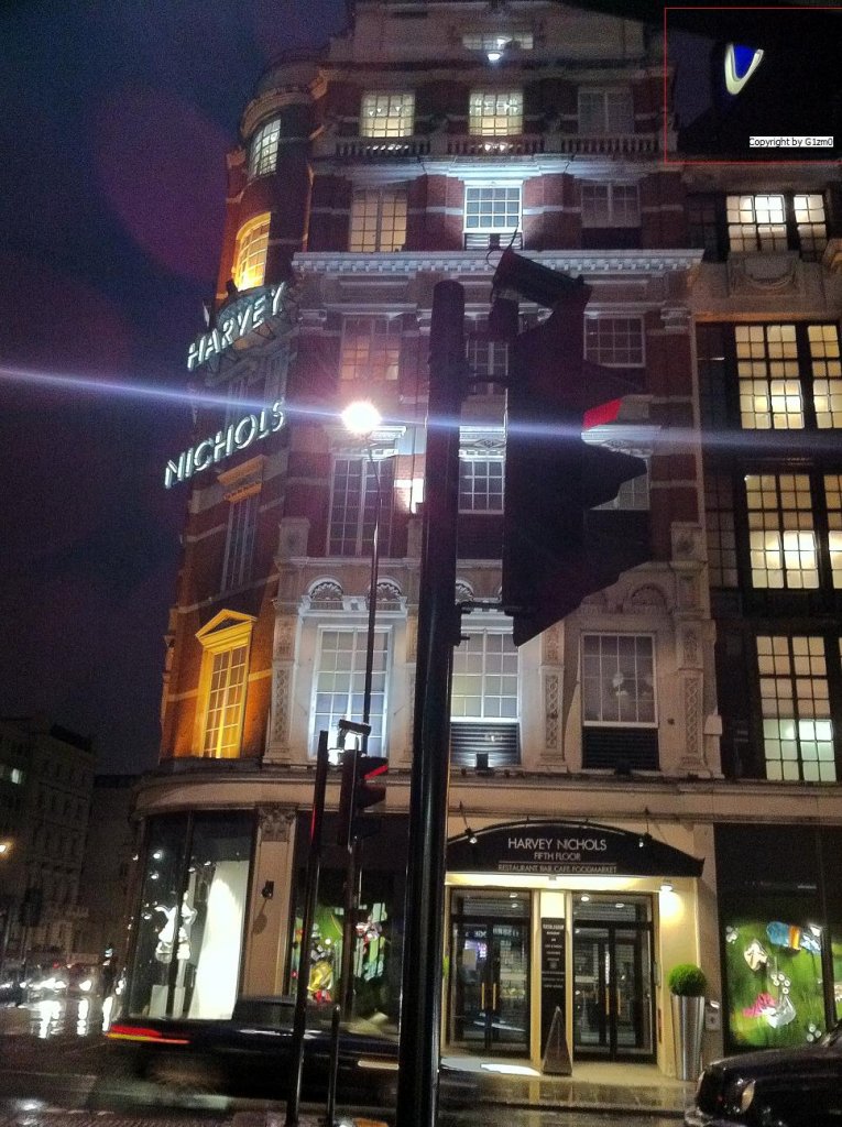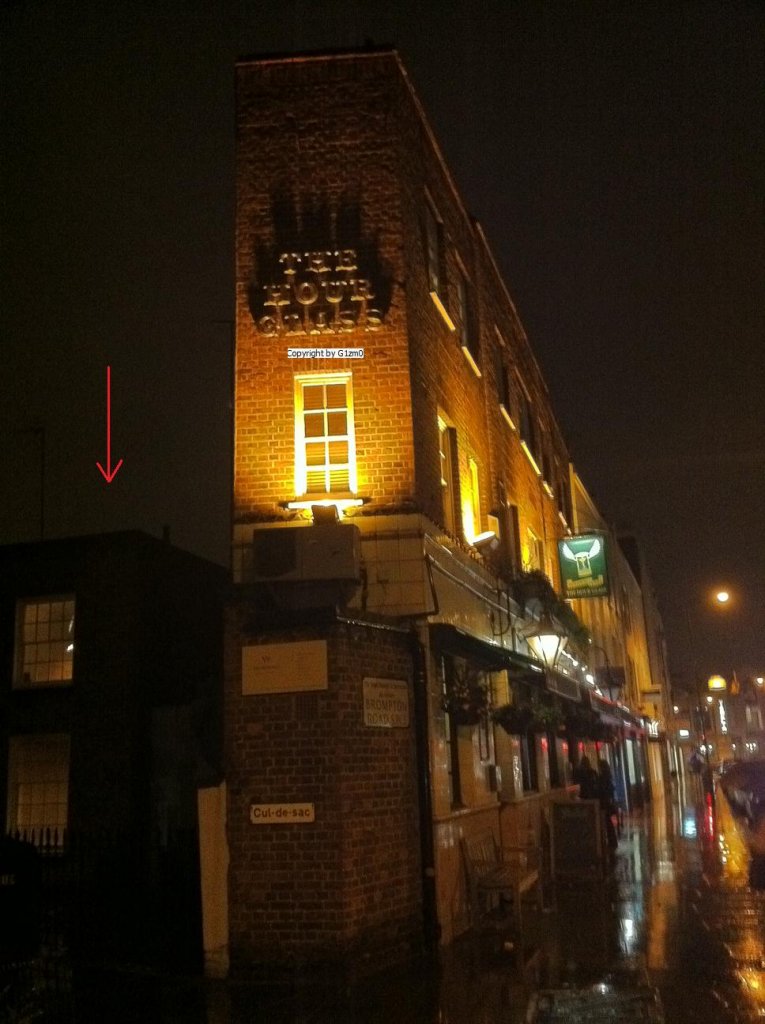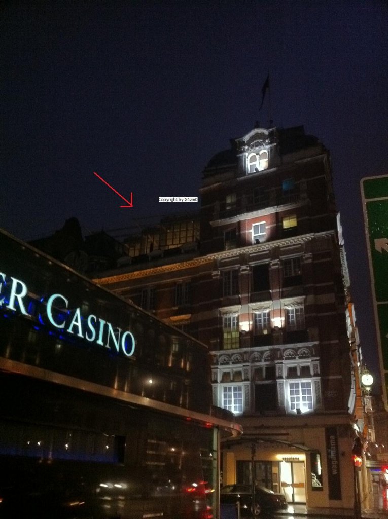 Leider sehr schlecht und wenig zu erkennen, OHP von der Knightsbridge aus: die roten Dinger zeigen an wo am Bild man suchen muss, das man sich etwas vorstellen kann X-).