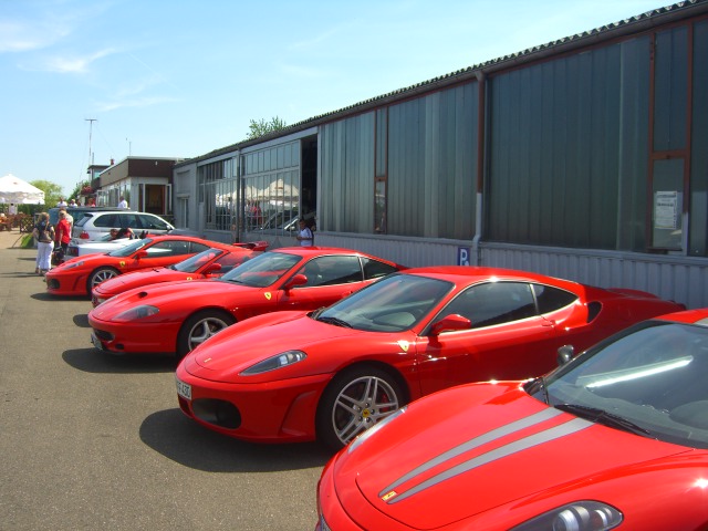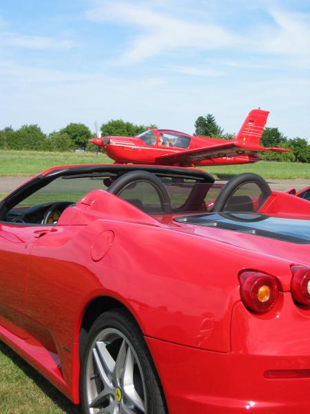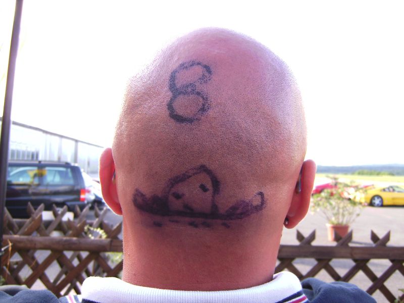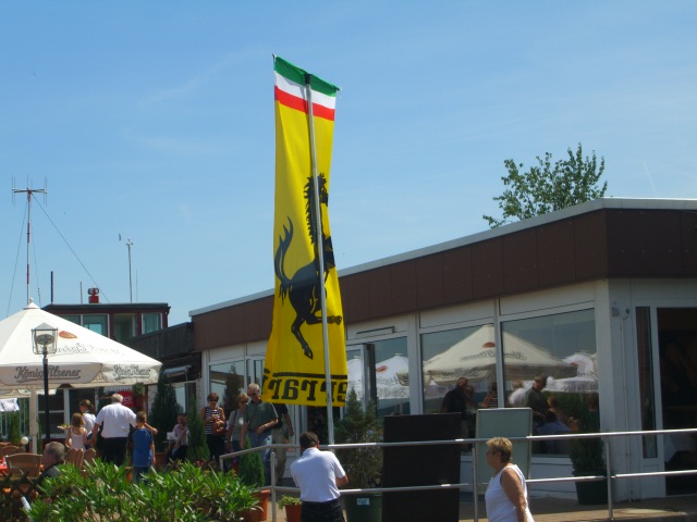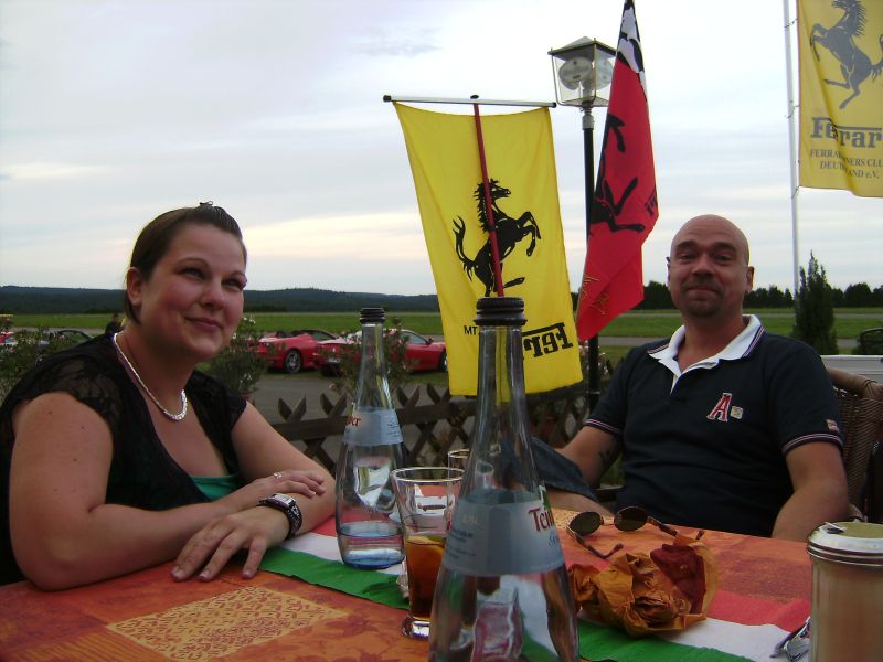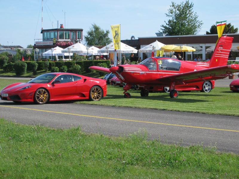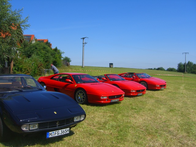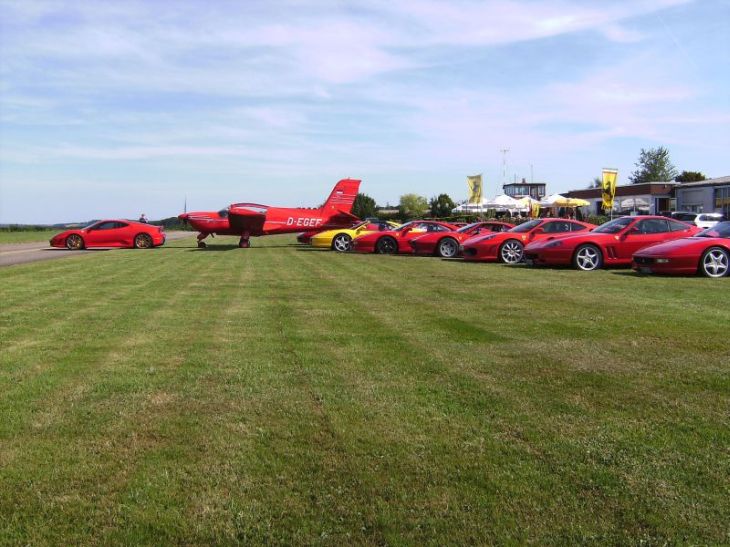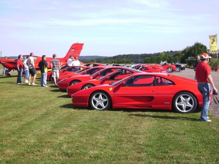 Am Flugplatz wurde dann vom abgesägten Präsidenten "Lord Helmchen" dann standardgemäß die Ferrari-Flagge feierlich gehißt. Schlußendlich hat es auch noch geklappt mit den Flugplatzrennen, obwohl die Luftaufsichtbehörde dies mehrmals torpediert hatte. Uphonics hat mal wieder gezeigt, wie man einen 355er stilgerecht im Drift um die Kurve lässt.
