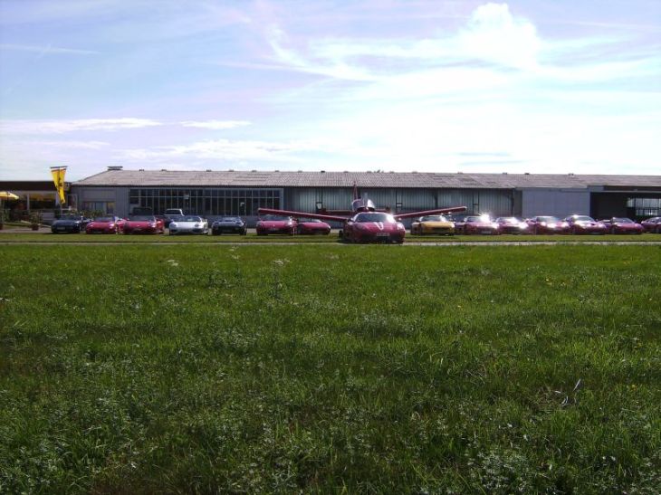 Samstag dann perfektes Wetter für unseren Ausflug zum Flugplatz Mosbach. Wobei, ich hatte ständig diesen schwarzen 911er am Hintern kleben. Denn bekam ich einfach nicht los! @Armin: Schön das Ihr auch dabei wart. Ihr zwei seid es immer wert, eine Ausnahme zu machen. Und ein schwarzer 911er zwischen all den Roten fällt eh fast nicht auf! O:-)