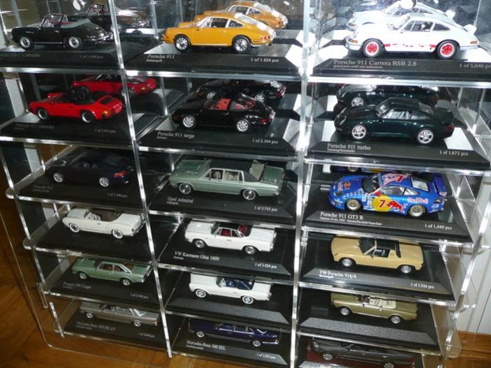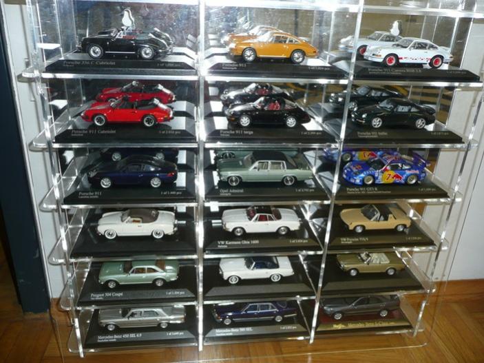 Ich habe eine Modellautosammlung in einem Verlass gefunden, 18 Stück, ich denke Maßstab 1:43 in einer Plexiglasvitrine.