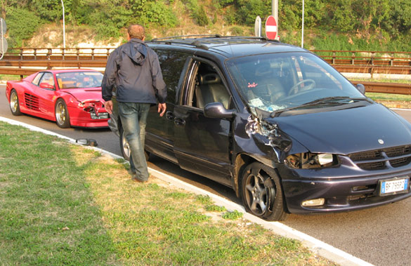 Der Voyager Fahrer ist leider Gottes in die Seite des testarossa gefahren !