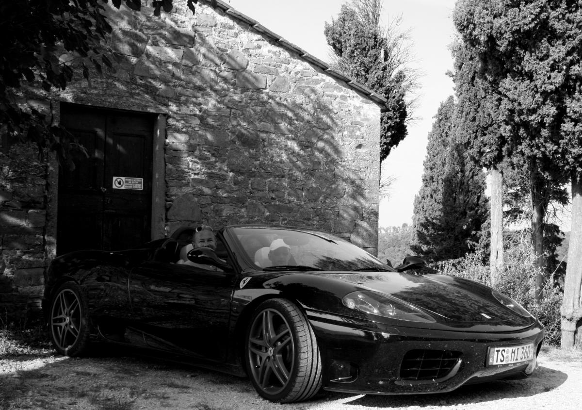 Die Sonne senkt sich über die Zypressen, der V8 brummt tief wie ein müder Opernsänger nach der letzten Arie. Und irgendwo, hinter einer Kurve, fällt eine reife Traube vom Rebstock ganz ohne Berührung. Nur aus Respekt.