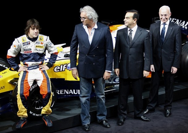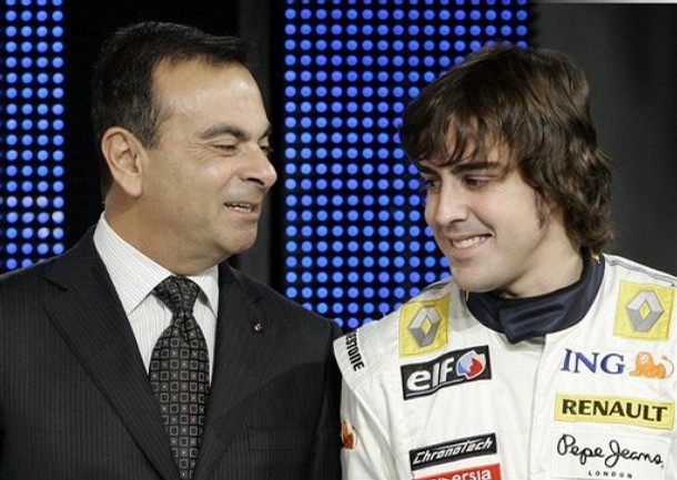 Hier Renault Boss Ghosn bei der Gt-R Präsentation, sowie Alonso mit seinem Brötchengeber.
