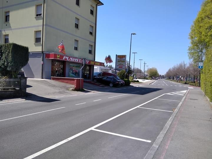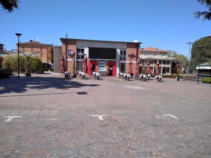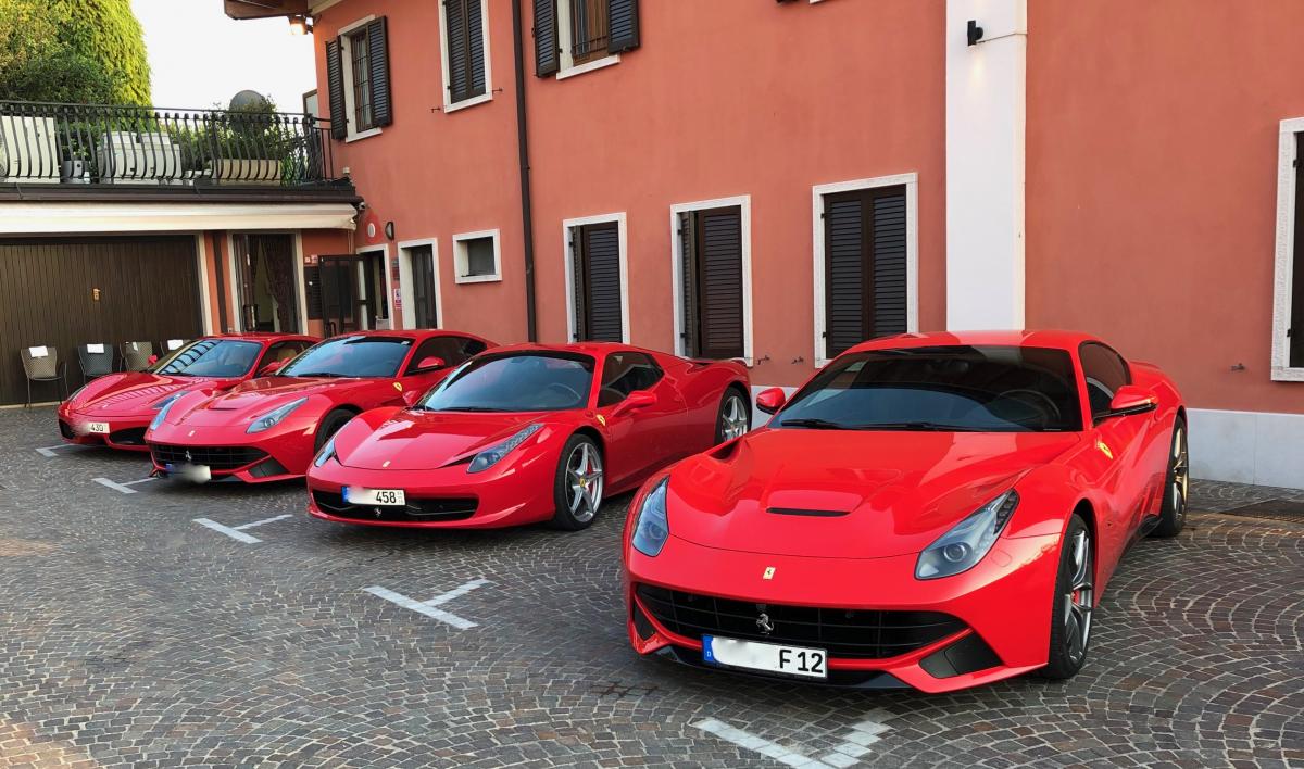 Parkplatz vor dem Ristorante Al Cardellino in Cisano. Parkplatzreservierung für die Roten inklusive. Leider kein Seeblick, aber sehr leckeres Essen. (Bild aus 2019)