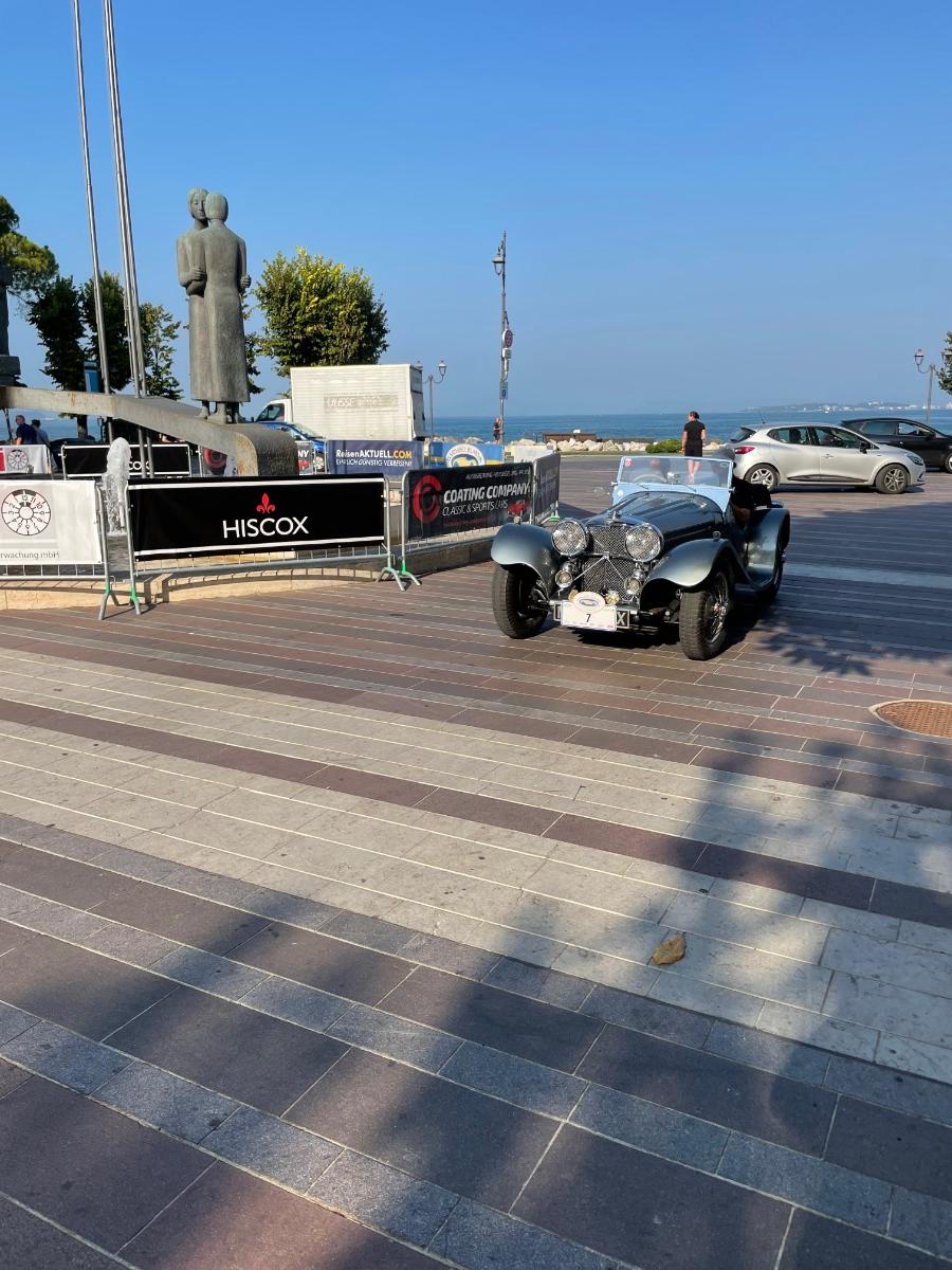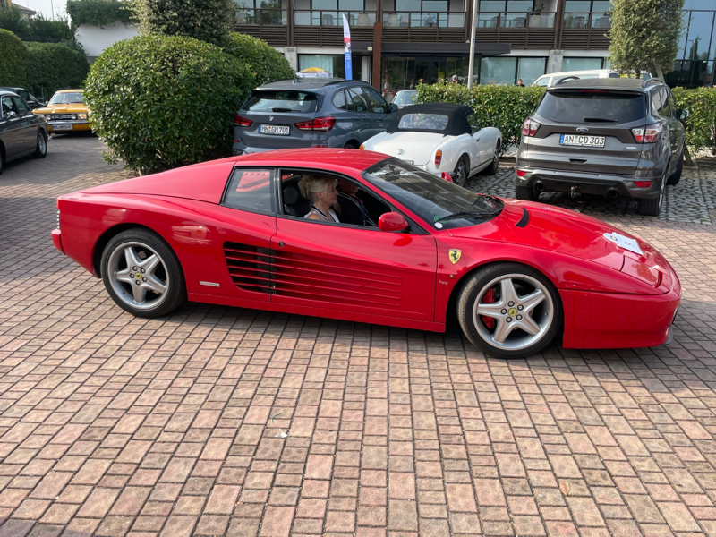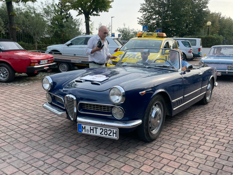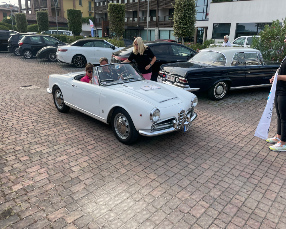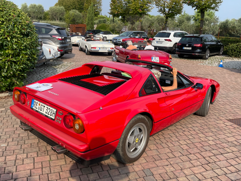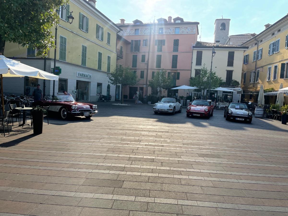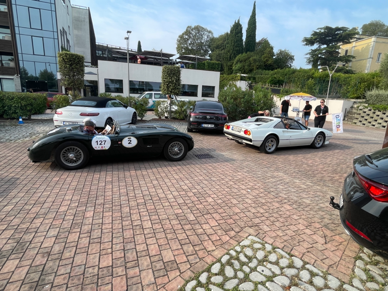 Nach der eher suboptimalen Youngtimer-Show findet diese Woche von Montag bis Donnerstag wieder die Gardasee-Klassik im südlichen Bereich in und um Desenzano statt. Die erste Ausfahrt mitsamt Zieleinlauf wie immer auf der Piazza in Desenzano war gestern, in den letzten Jahren war der Einlauf meines Erachtens besser koordiniert, da konnte man dann irgendwann alle auf einem Flecken anschauen, gestern war’s leider nur stete Durchfahrt zur Stempelkontrolle. Anhalten tat danach fast keiner. Daher bin ich heute morgen früh direkt zum Tagesstart ins Hotel Aquaviva gefahren und konnte dort so ziemlich alles mitkriegen.