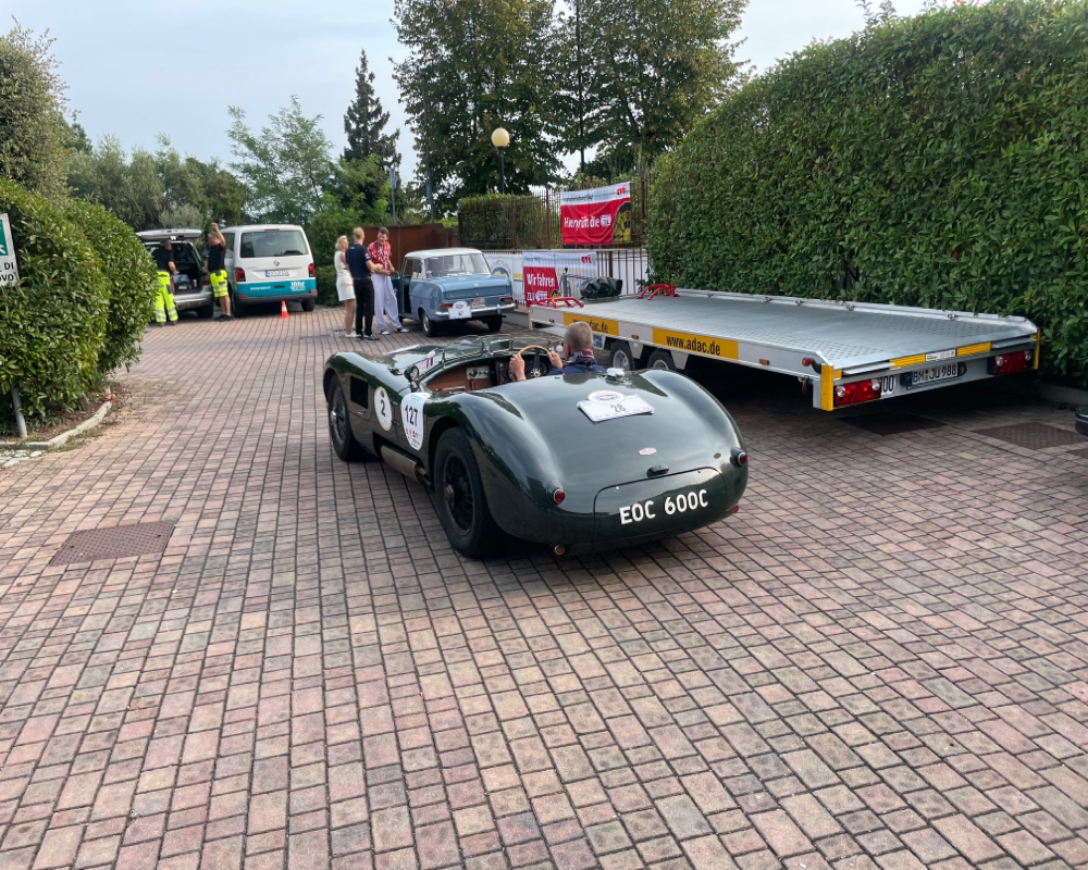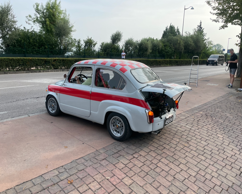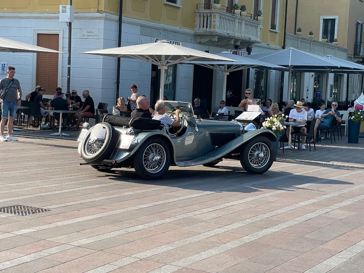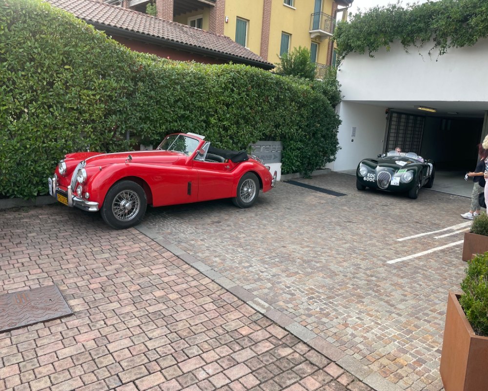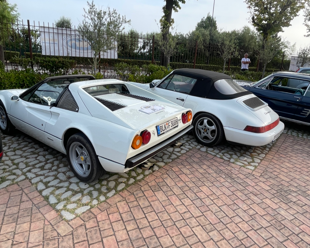 Nach der eher suboptimalen Youngtimer-Show findet diese Woche von Montag bis Donnerstag wieder die Gardasee-Klassik im südlichen Bereich in und um Desenzano statt. Die erste Ausfahrt mitsamt Zieleinlauf wie immer auf der Piazza in Desenzano war gestern, in den letzten Jahren war der Einlauf meines Erachtens besser koordiniert, da konnte man dann irgendwann alle auf einem Flecken anschauen, gestern war’s leider nur stete Durchfahrt zur Stempelkontrolle. Anhalten tat danach fast keiner. Daher bin ich heute morgen früh direkt zum Tagesstart ins Hotel Aquaviva gefahren und konnte dort so ziemlich alles mitkriegen.