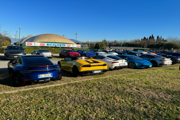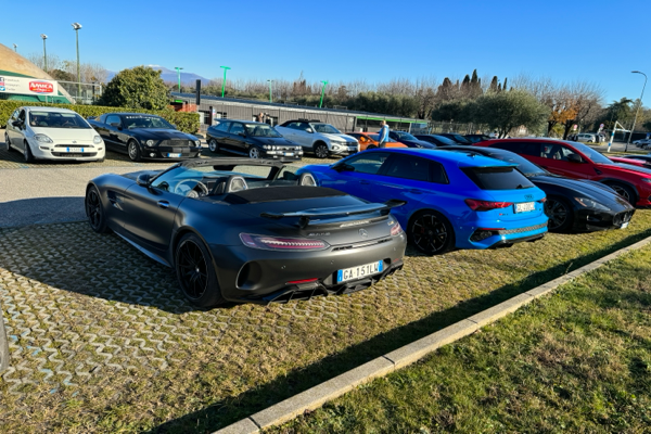 Wurde eben gerade auf der Fahrt von Saló zur anderen Seite nach Bardolino am Ortsausgang von Desenzano von diesem Treffen überrascht. Muss wohl irgendein Gumball-artiges Event sein, nicht übel!