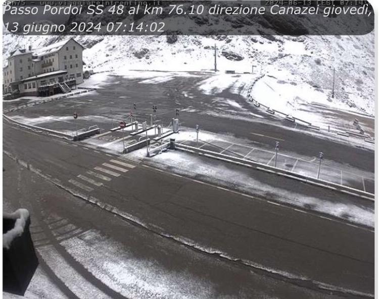 Ach du sch…, exakt genau daran führt meine Stammstrecke von Cortina in Richtung Lago in gut einer Woche auch wieder vorbei. Das schaut ja jetzt noch übler als Ende April aus😳. Anfang April waren da an die 20 Grad und Sonnenschein. Passo Falzarego und direkt daran anschließend Passo Pordoi fahr ich so gut wie jedes Mal, aber Mitte Juni hab ich solche Bedingungen da noch nimmer erlebt. Richtig besch…, zumal jetzt a) doch eh kaum ein Schwein noch Winterreifen drauf hat (auf einem Mietwagen, wie ich meist dafür nehme erst Recht nicht) und b) es im Rest Italiens wie z.B. am Lago sogar Bußgeld kostet, im Sommer, glaub ab Mai oder Juni, mit Winterreifen zu fahren (!!!). Hab ich im letzten Jahr zu meinem Erstaunen nämlich erstmals erfahren.
