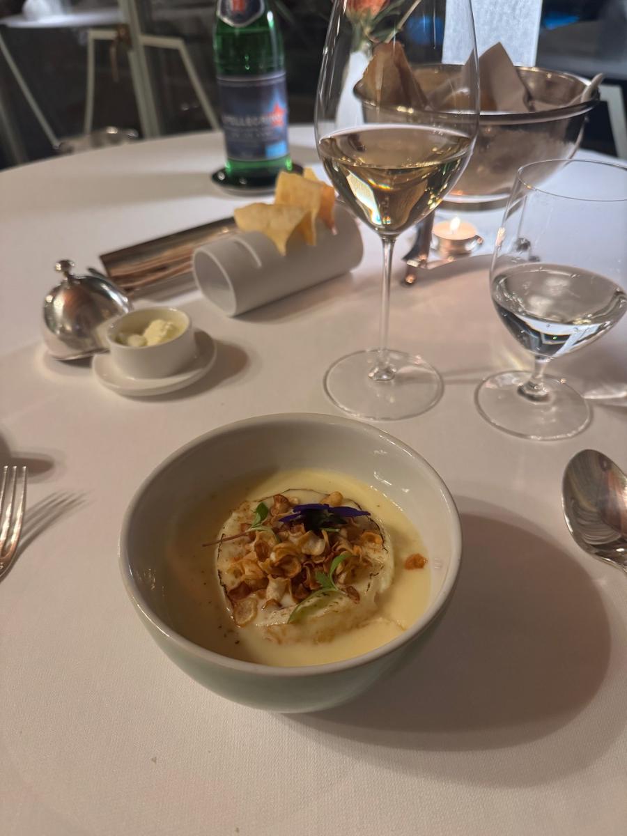 Das Restaurant war an dem Abend auch zum Abschluss zu max. 50% gefüllt, ausgerechnet direkt unmittelbar neben mir musste dann schließlich eine 3köpfige englische Familie mit einem gefühlten halben Kalb in Form eines Hundes, der nur mit viel Mühe zur Ruhe kam, platziert werden. Sowas hat in meinen Augen in einem Sterneladen rein gar nichts zu suchen und kann einem den Abend respektive den Genuß unter Umständen schon mal stark eintrüben.